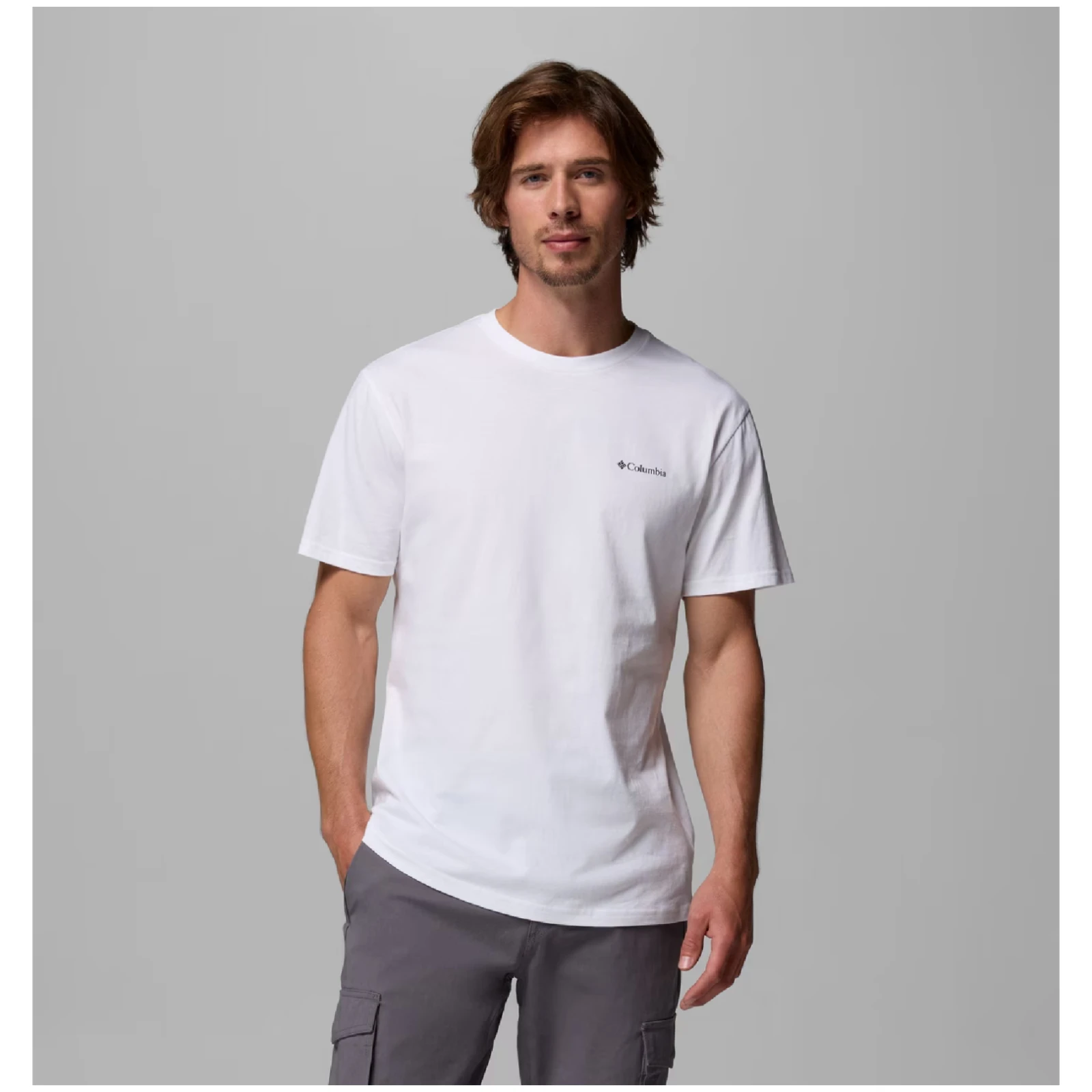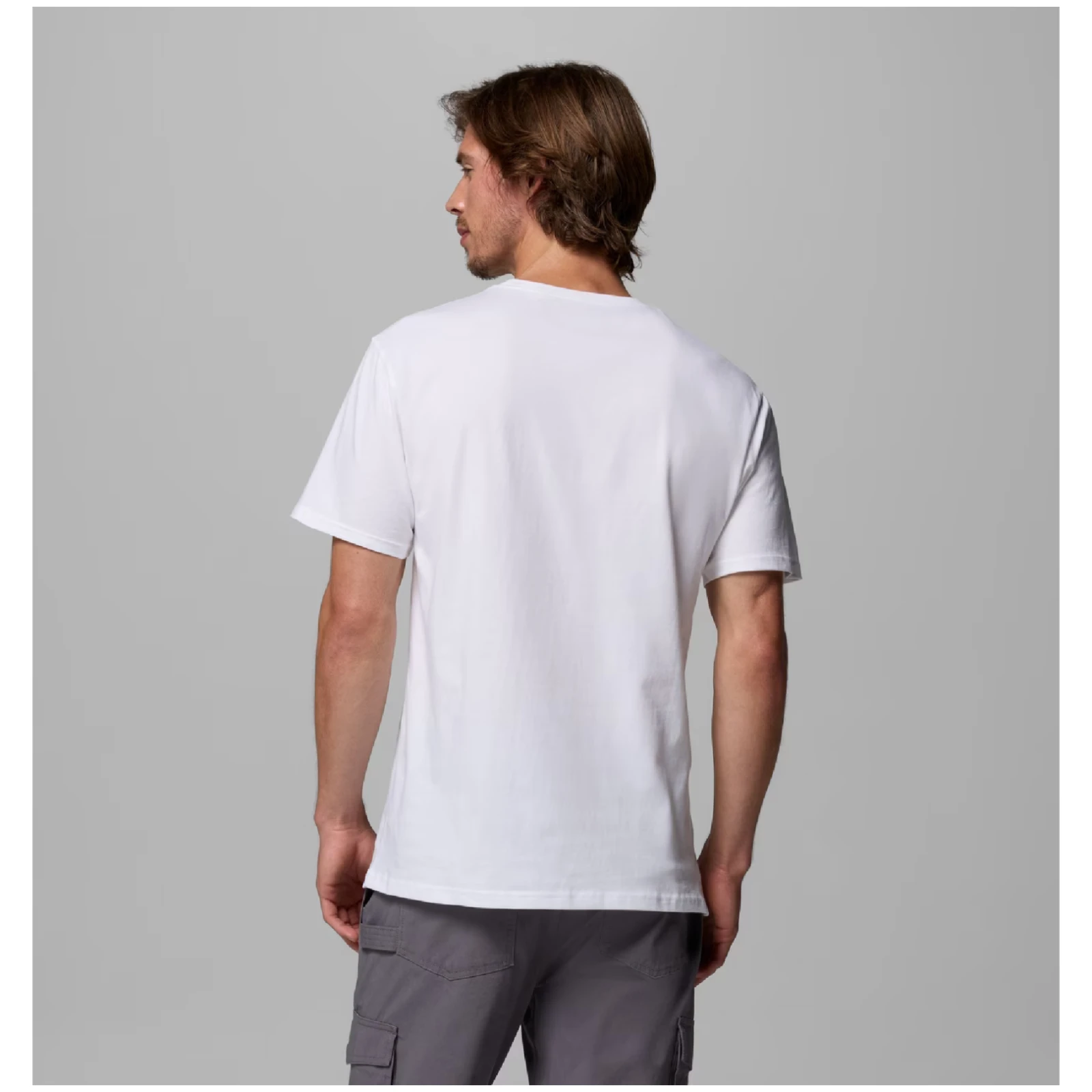 La camiseta Columbia para hombre es la opción ideal para el uso diario y las actividades urbanas. El corte clásico con manga corta y cuello redondo se complementa con el logo de Columbia en el pecho, que realza el estilo deportivo.