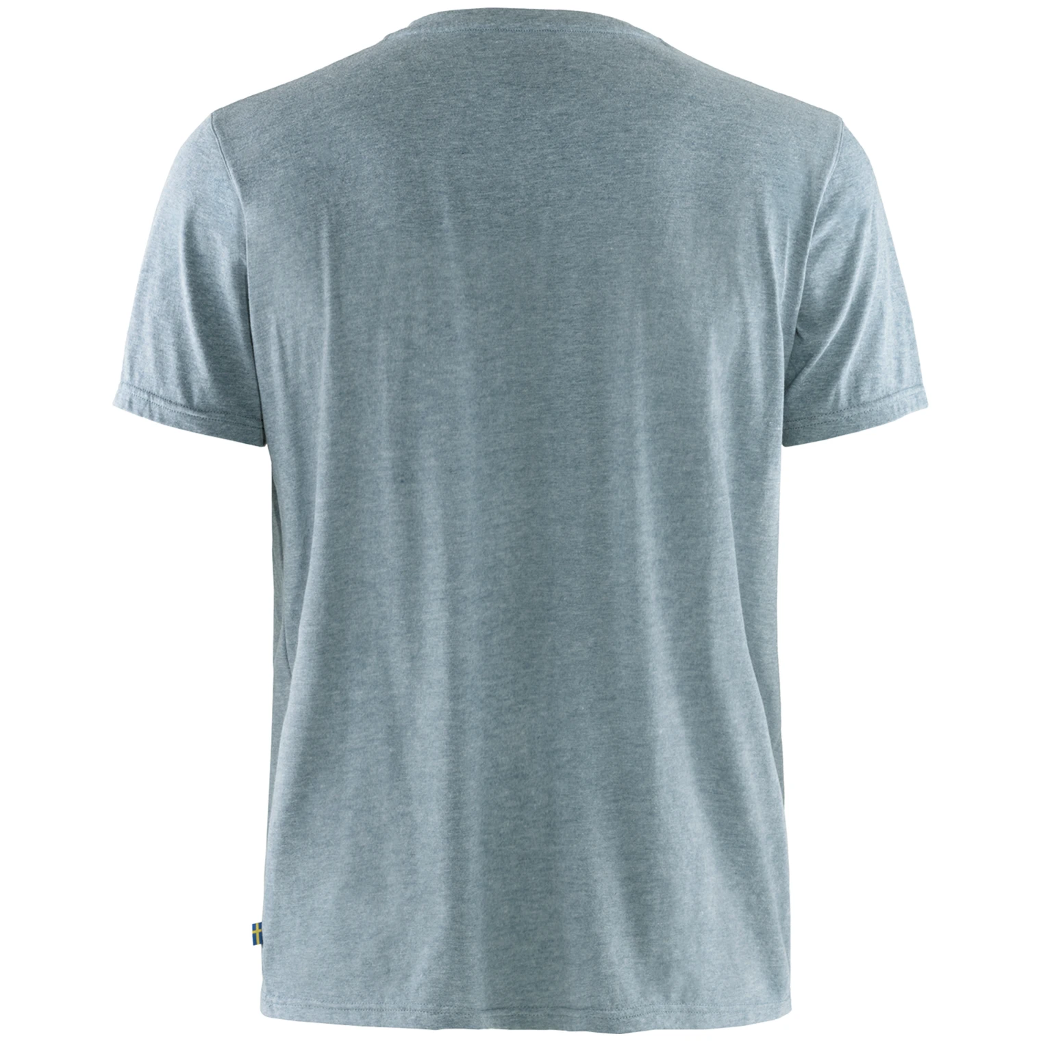 Camiseta de manga corta para hombre Fjällräven La camiseta con logo M está confeccionada con un tejido de punto sostenible que combina la suavidad del algodón orgánico con la funcionalidad y la durabilidad poliéster reciclado. Absorbe la humedad y se seca rápidamente, por lo que resulta muy cómoda en climas cálidos. La camiseta tiene escote redondo y el logotipo en el pecho.
