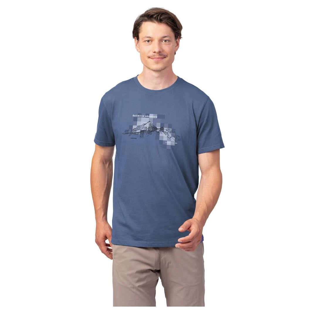 La camiseta de hombre Luke Hannah, confeccionada 100% en algodón orgánico, ofrece un ajuste holgado y cómodo, un estampado sutil, ligereza y alta transpirabilidad.