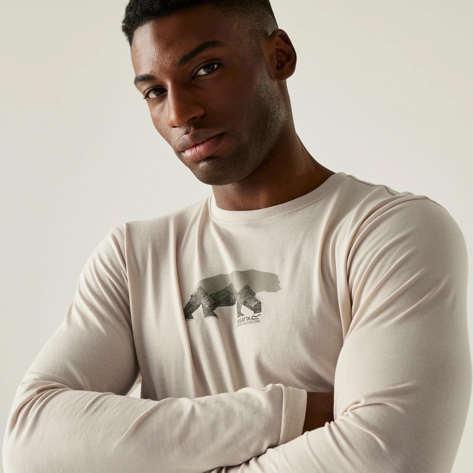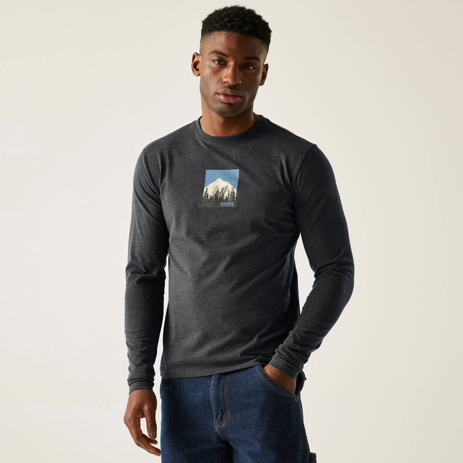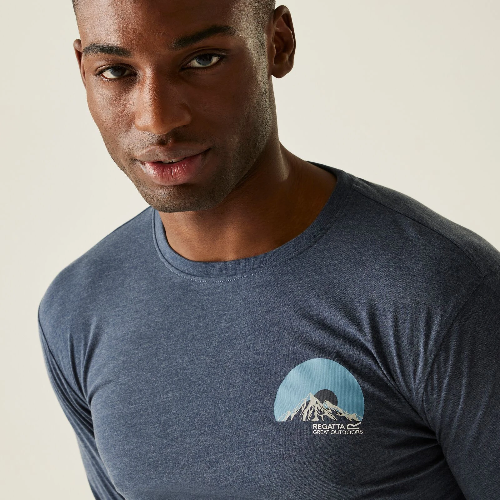 Camiseta de hombre Maylow de la marca Regatta, confeccionada en algodón y poliéster sostenibles, con cuello redondo y una moderna combinación de estampados gráficos y lisos.