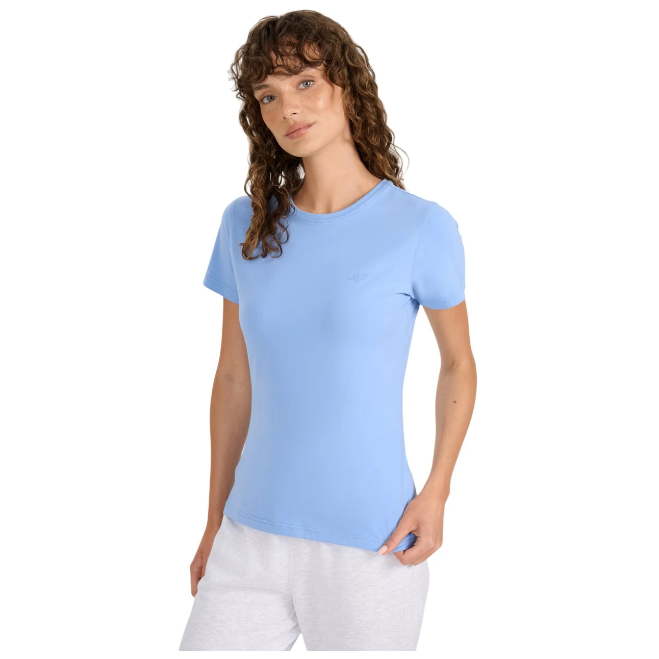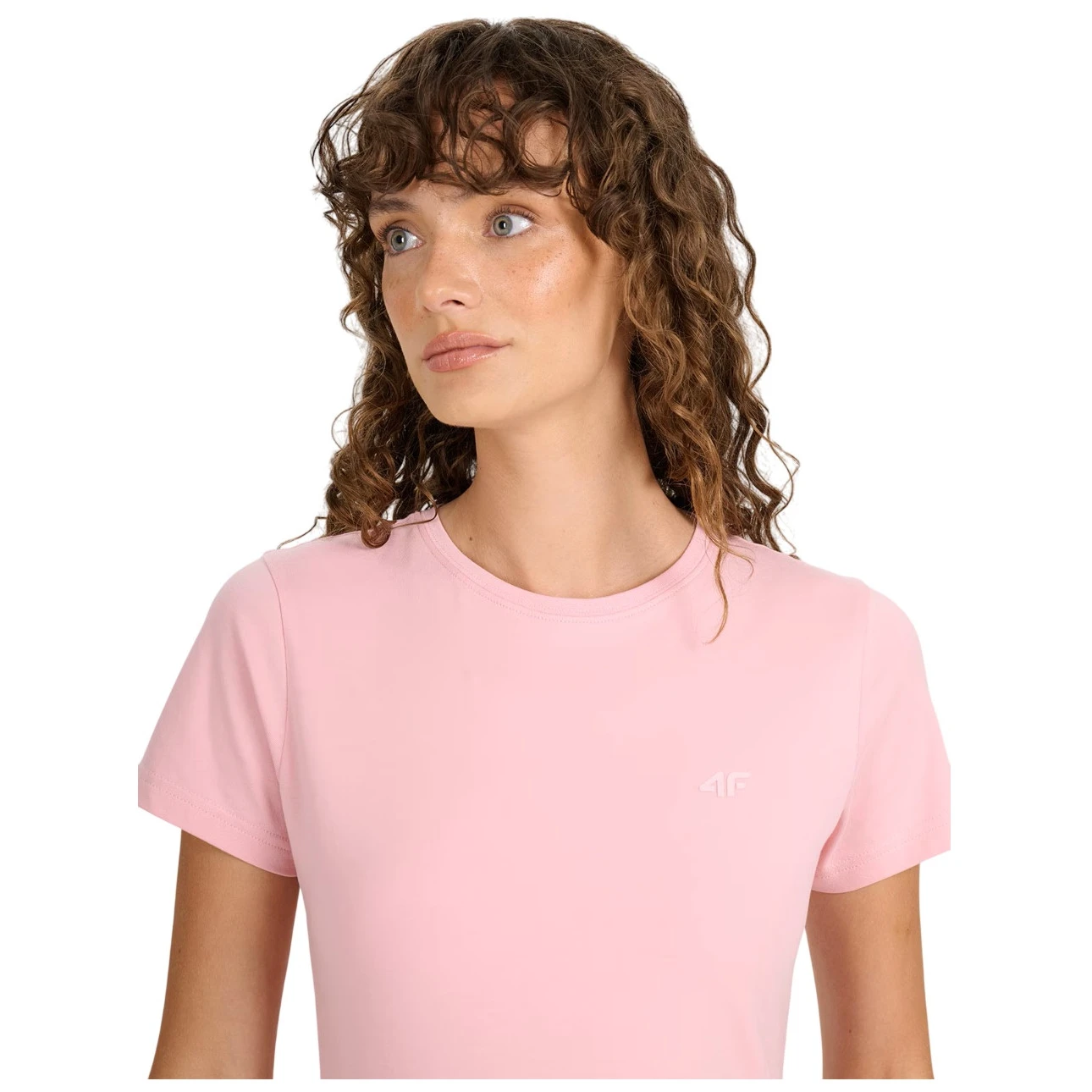 La camiseta de mujer Tshirt F2255 4F de corte ajustado está confeccionada en algodón con un toque de elastano. Gracias a su ligereza y transpirabilidad de 180 g/m², es ideal para el uso diario en verano e incluso como capa base.