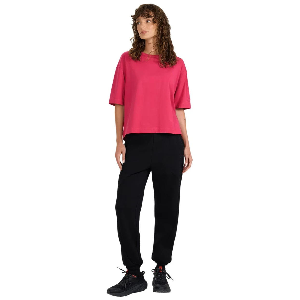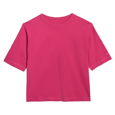 La camiseta de mujer Tshirt F2350 4F de corte oversize está confeccionada en 100 % algodón. Gracias a su gramaje de 200 g/m² no es transparente, mantiene su forma y proporciona una gran comodidad para el uso diario.