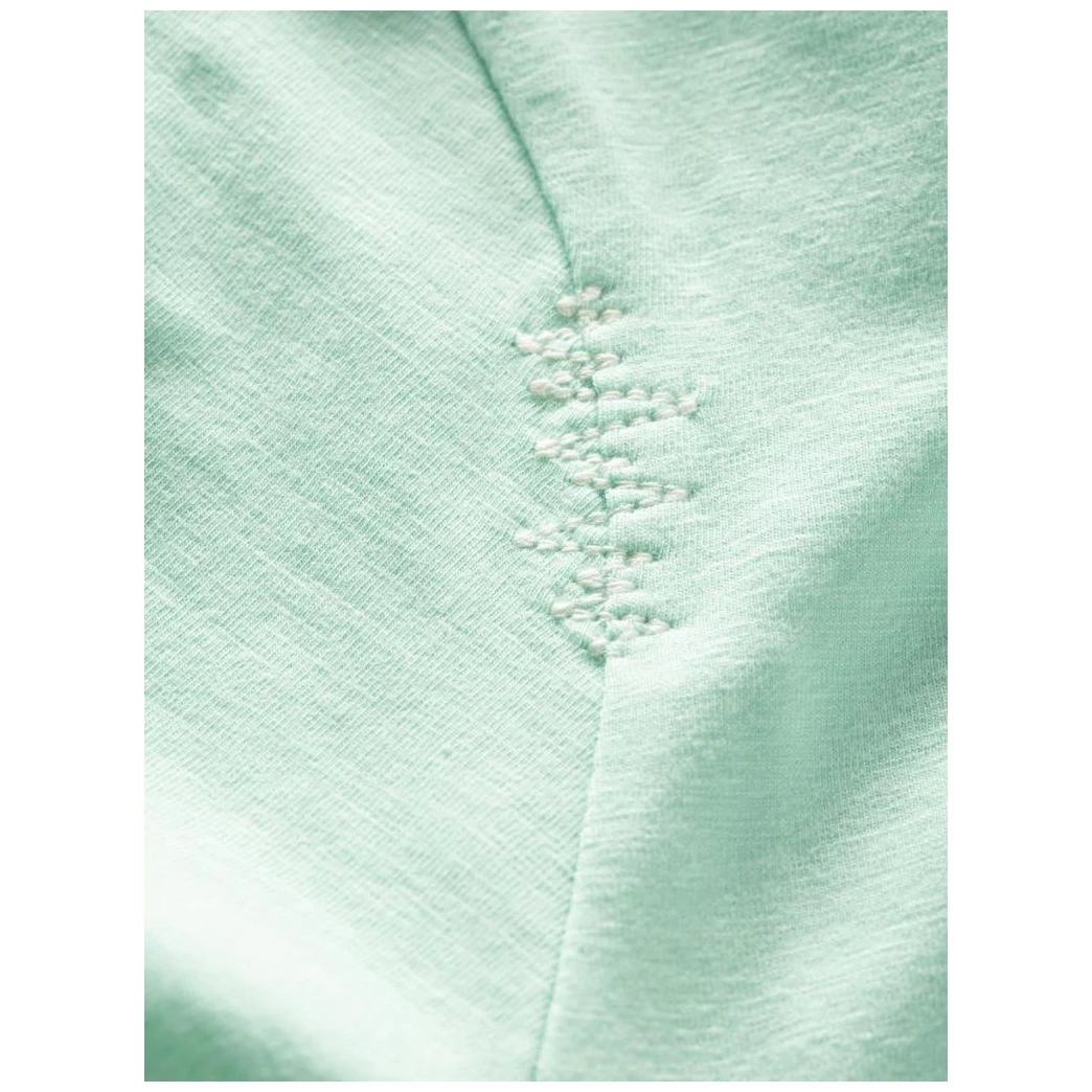 Fibras Austriacas Modal (TENCEL™) en combinación con algodón turco y elastano (Lycra®) ventilan perfectamente tu cuerpo y no dan oportunidad a las bacterias. La camiseta tiene la cintura ceñida, escote redondo y una costura decorativa en el dobladillo de la manga.