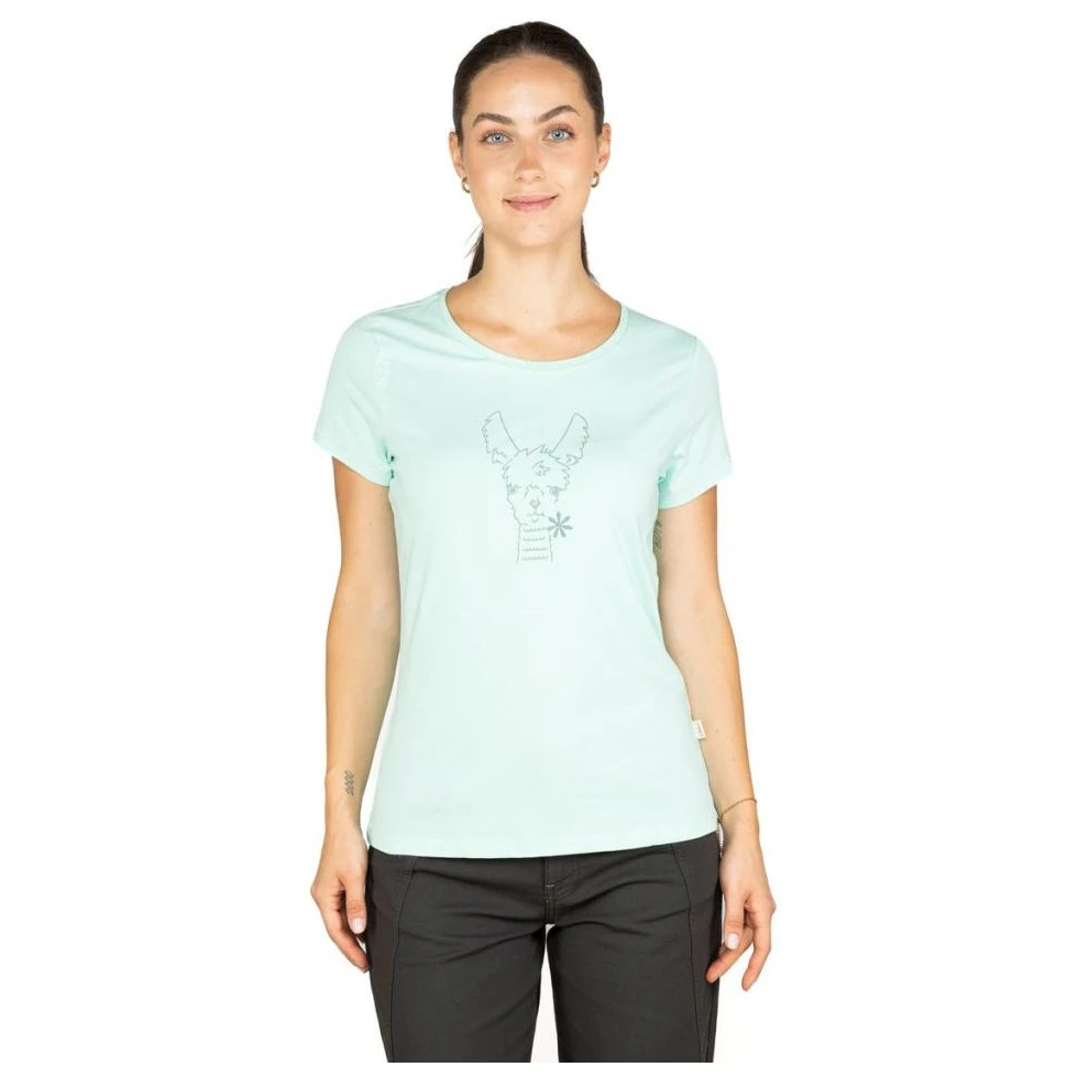 La camiseta de mujer Happy Alpaca del fabricante Chillaz es cómoda y funcional, lo que la hace ideal para practicar deporte y ocio. Además, procede de la producción ecológica.
