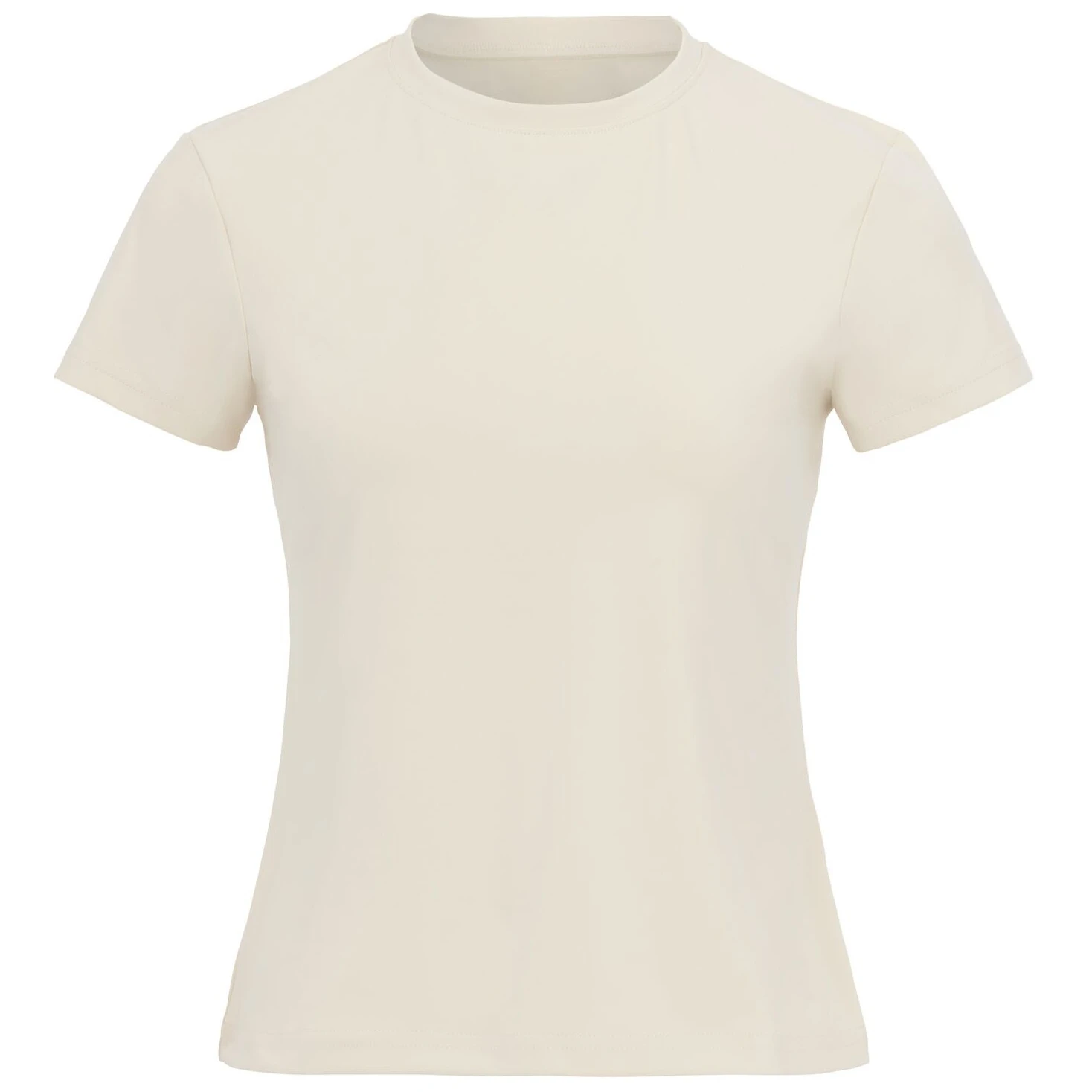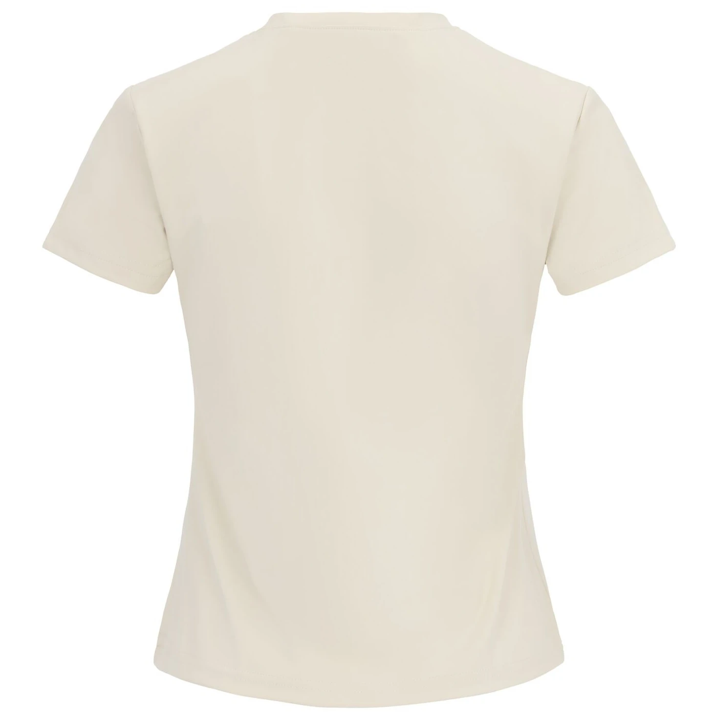 El cuello redondo garantiza un ajuste cómodo y un aspecto versátil que puedes usar tanto para el deporte como para el tiempo libre. La camiseta es, por lo tanto, una opción práctica y funcional para días activos en los que quieres sentirte cómoda y segura de ti misma.