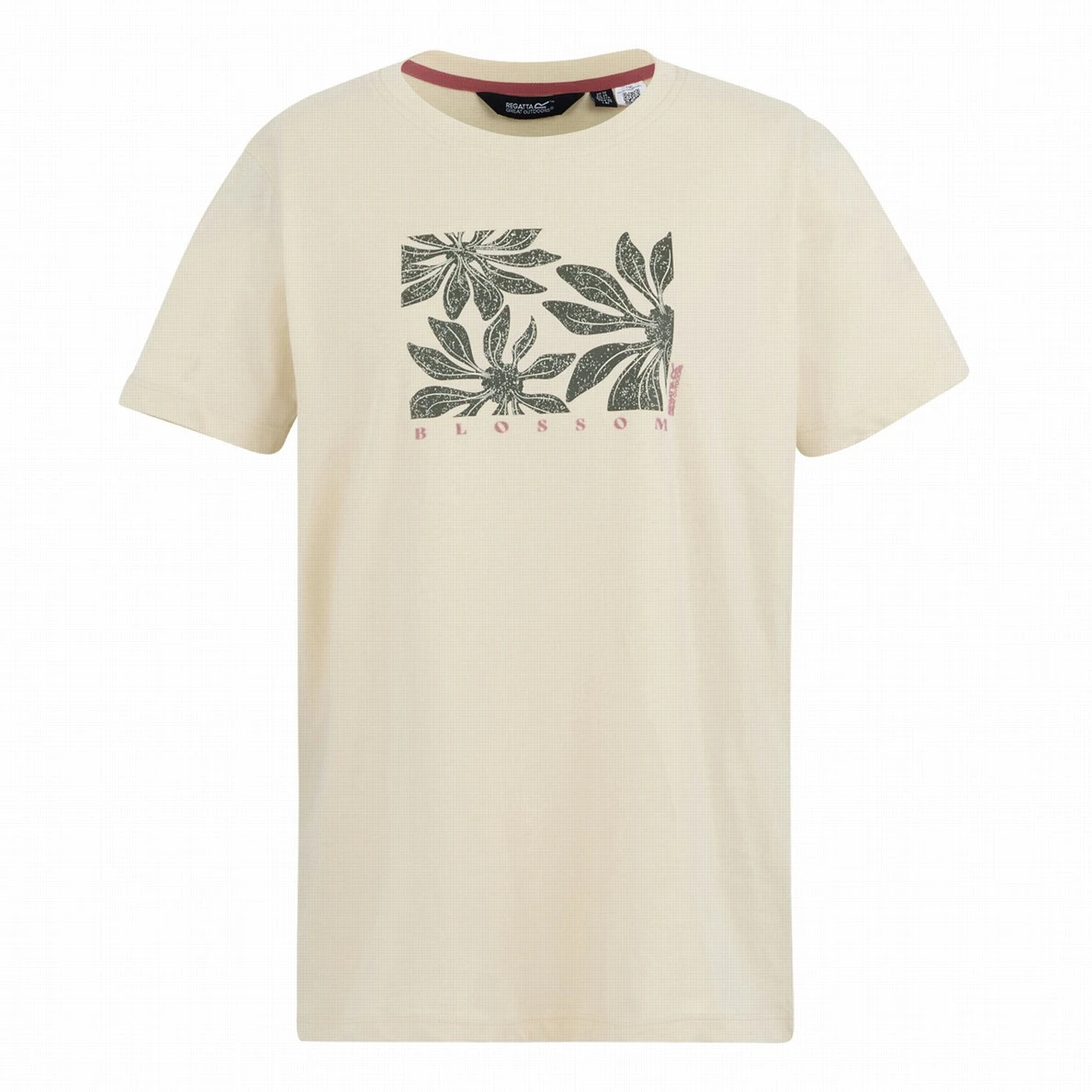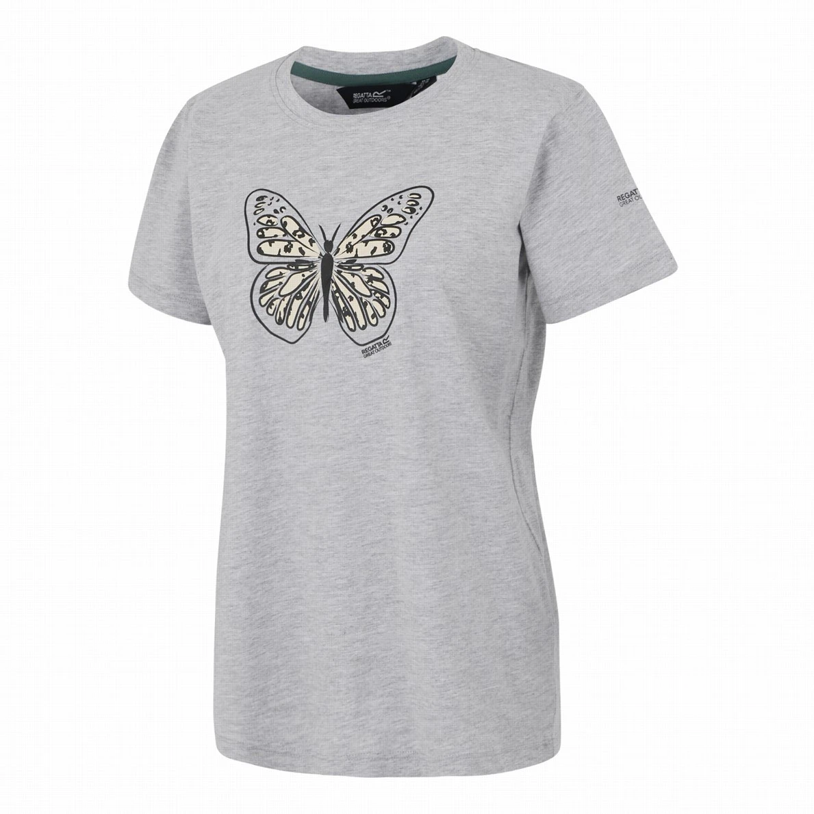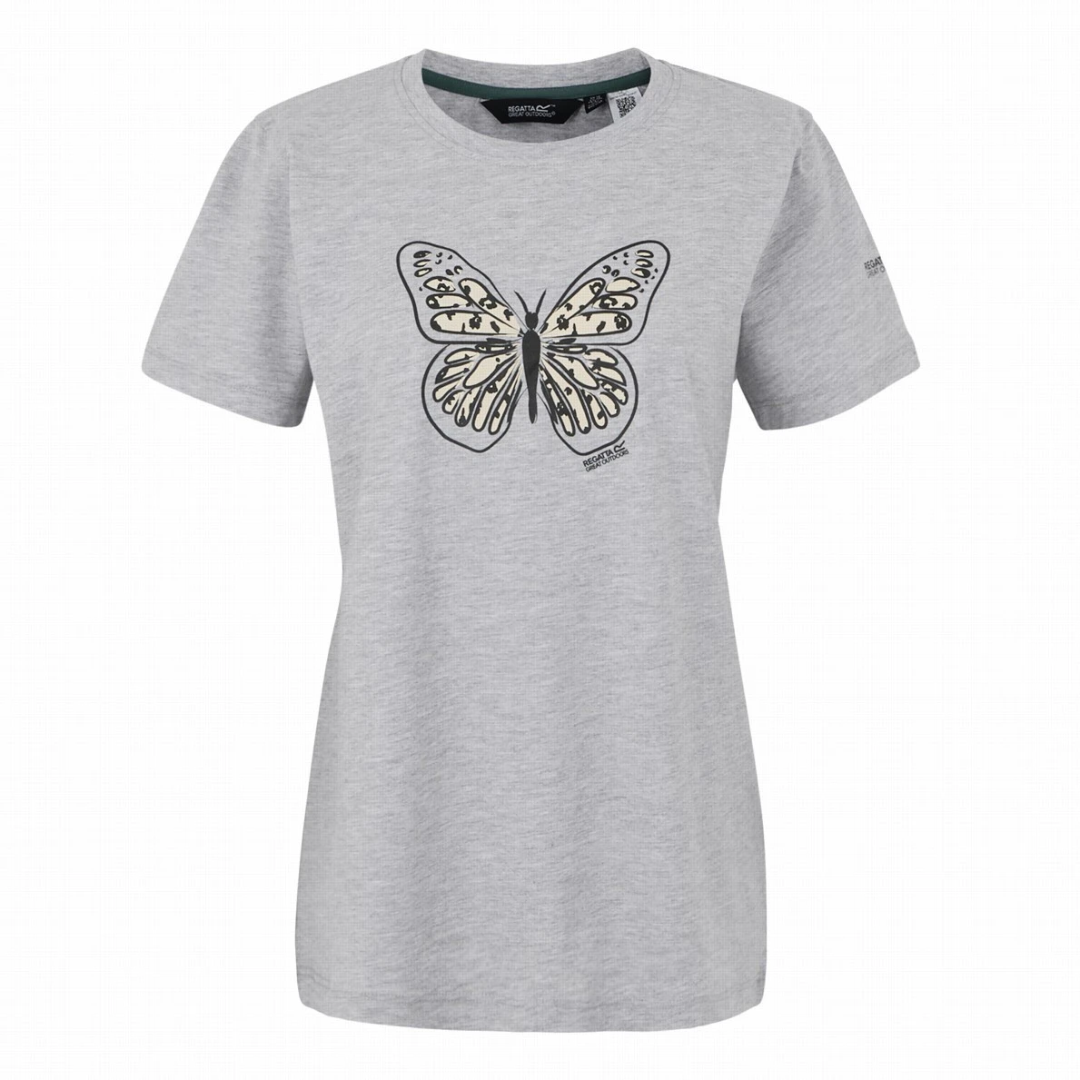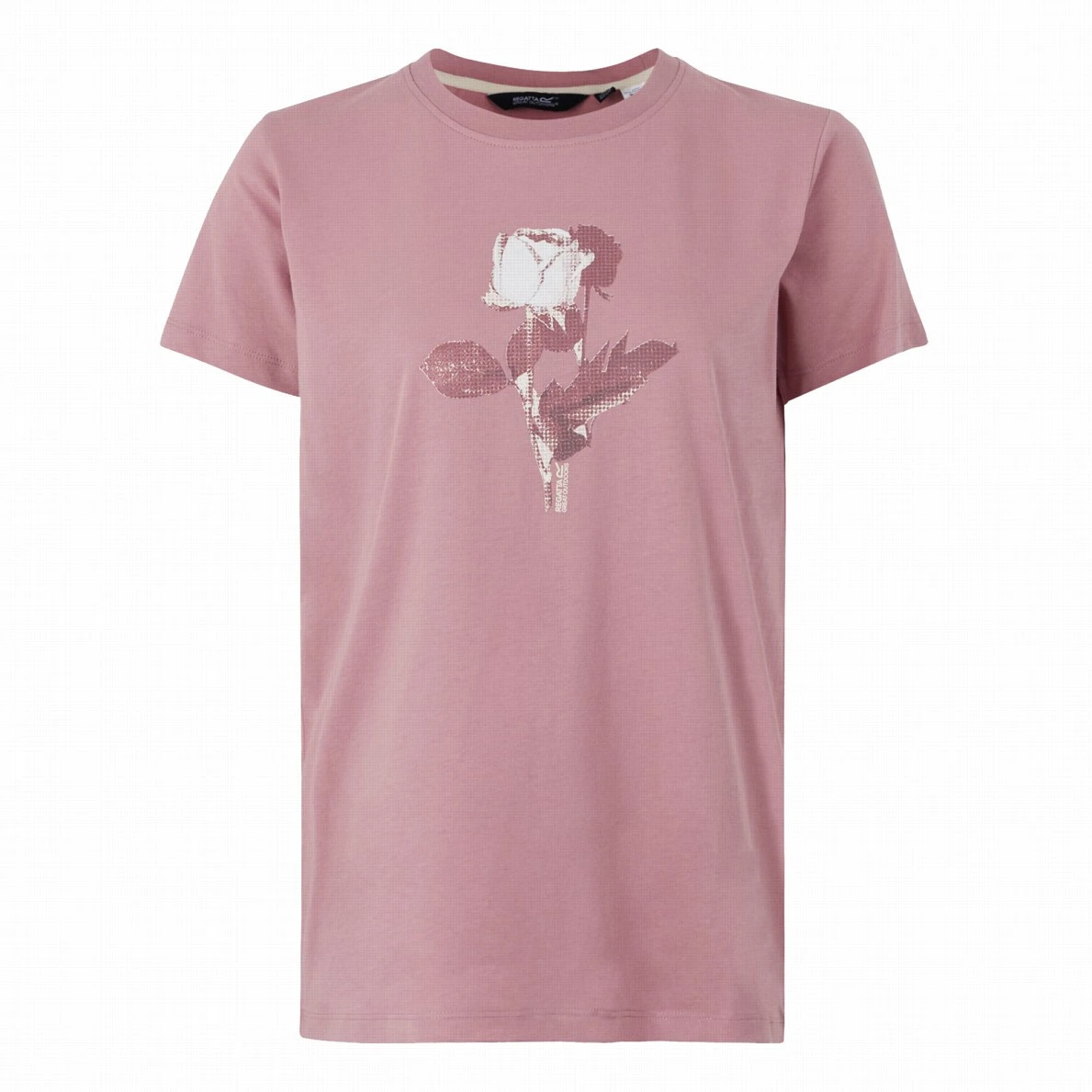 Elegante camiseta para mujer Filandra IX de marca Regatta de 60% algodón sostenible y 40% poliéster con tecnología Coolweave ofrece comodidad, estilo y responsabilidad ambiental.