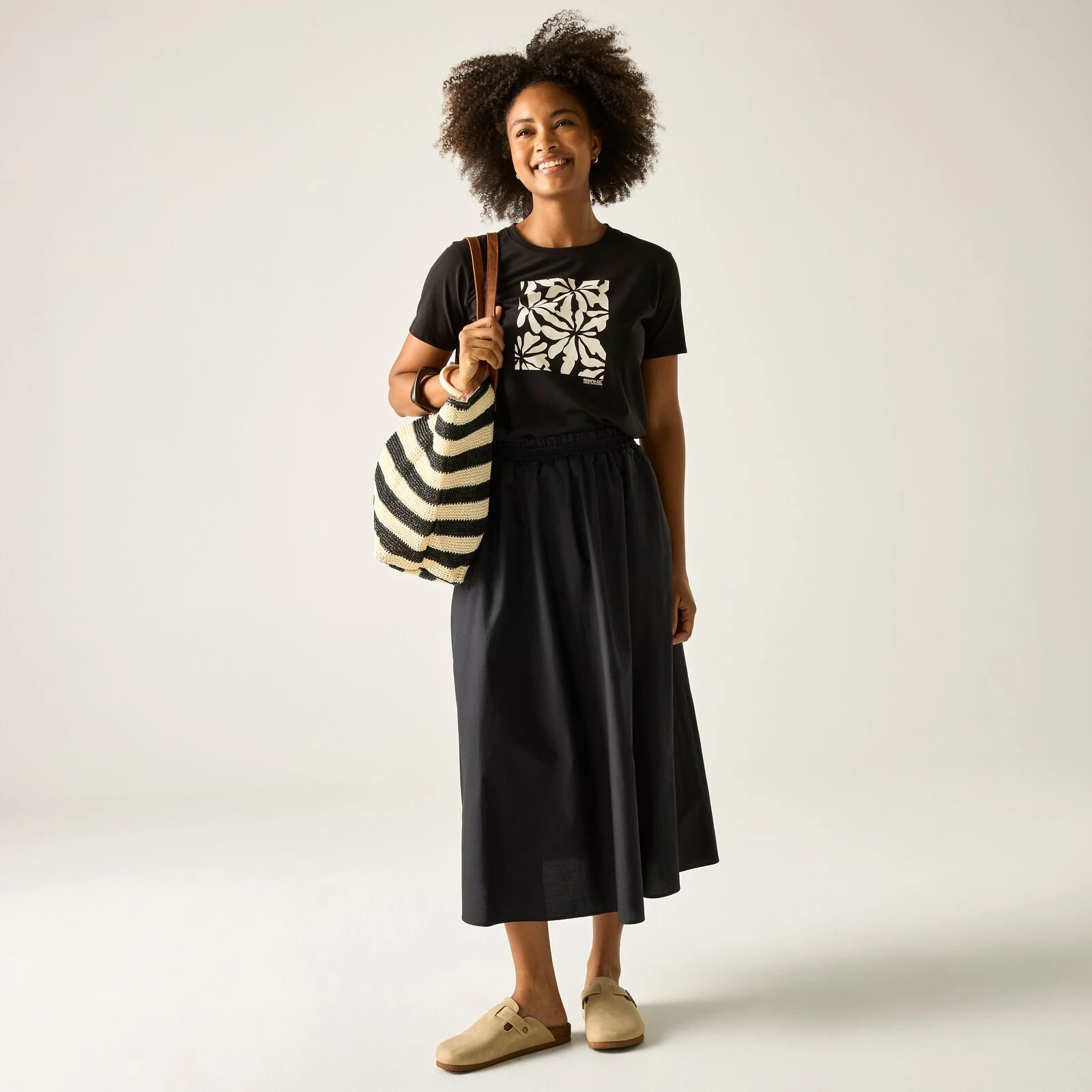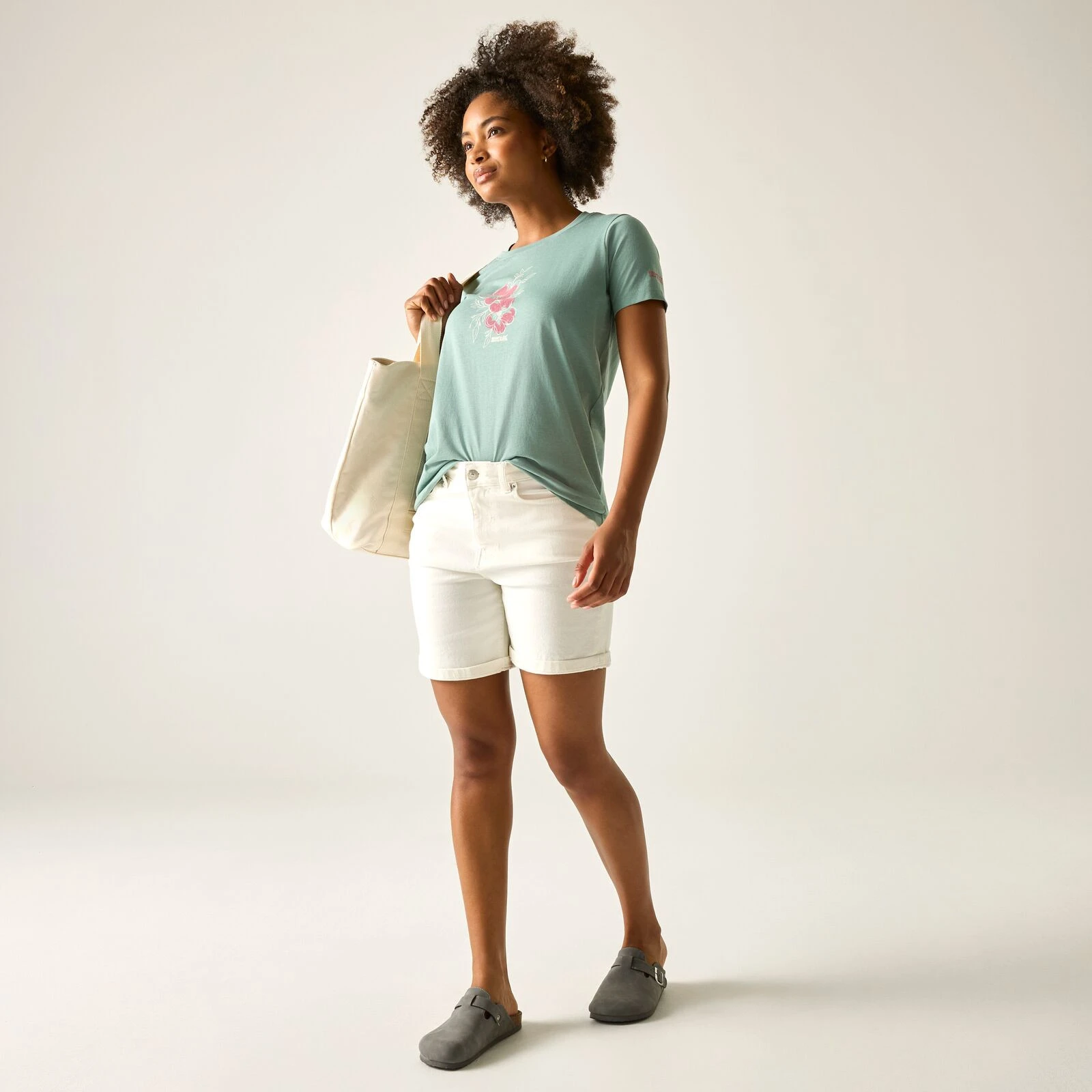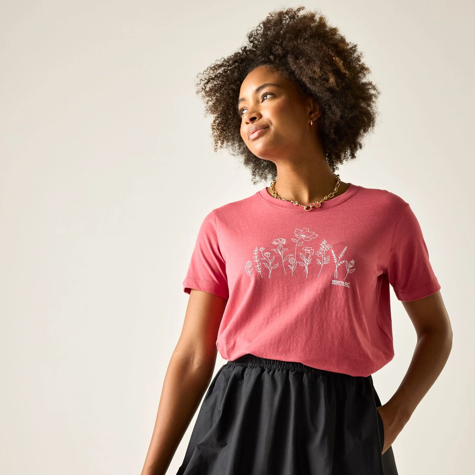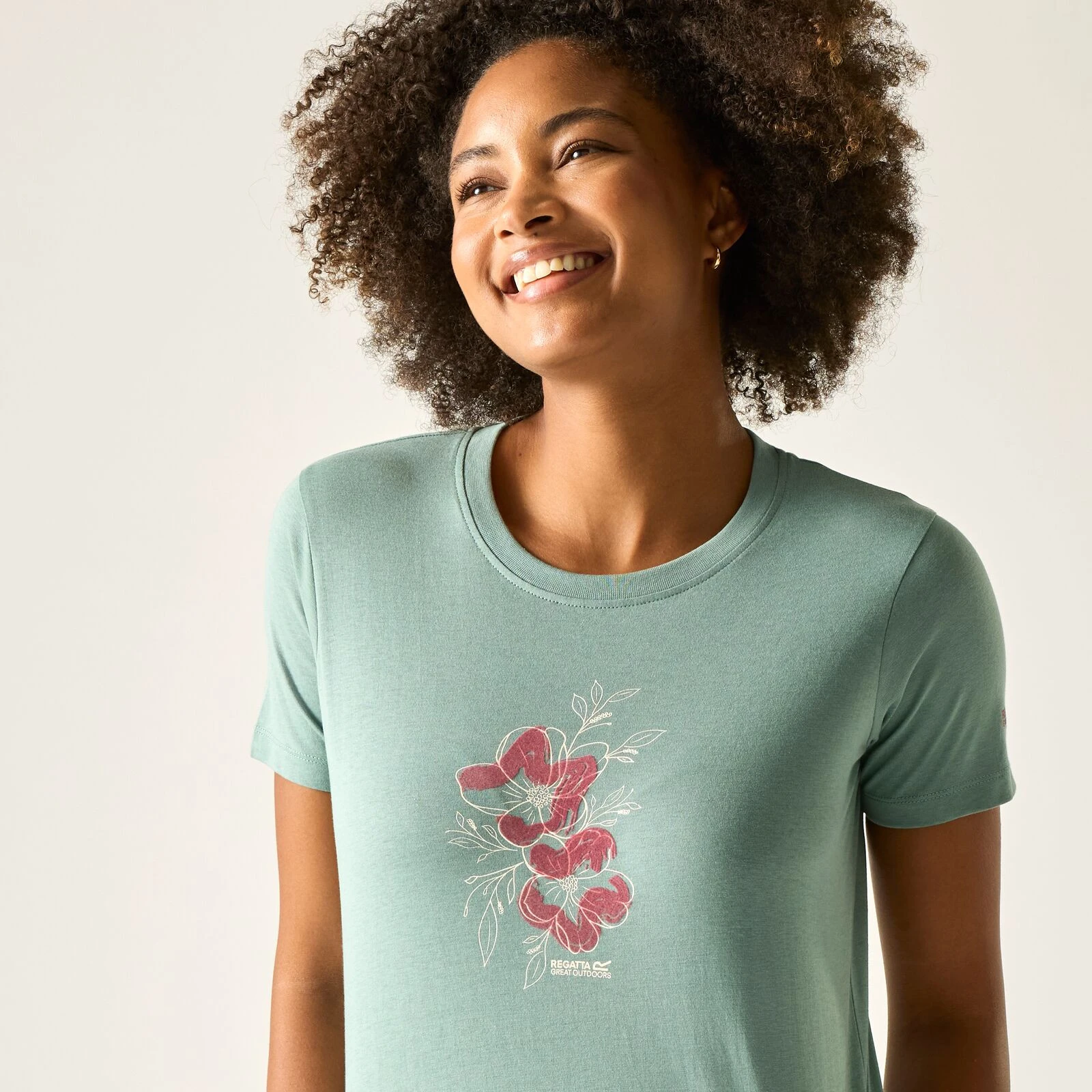 Elegante camiseta para mujer Filandra IX de marca Regatta de 60% algodón sostenible y 40% poliéster con tecnología Coolweave ofrece comodidad, estilo y responsabilidad ambiental.