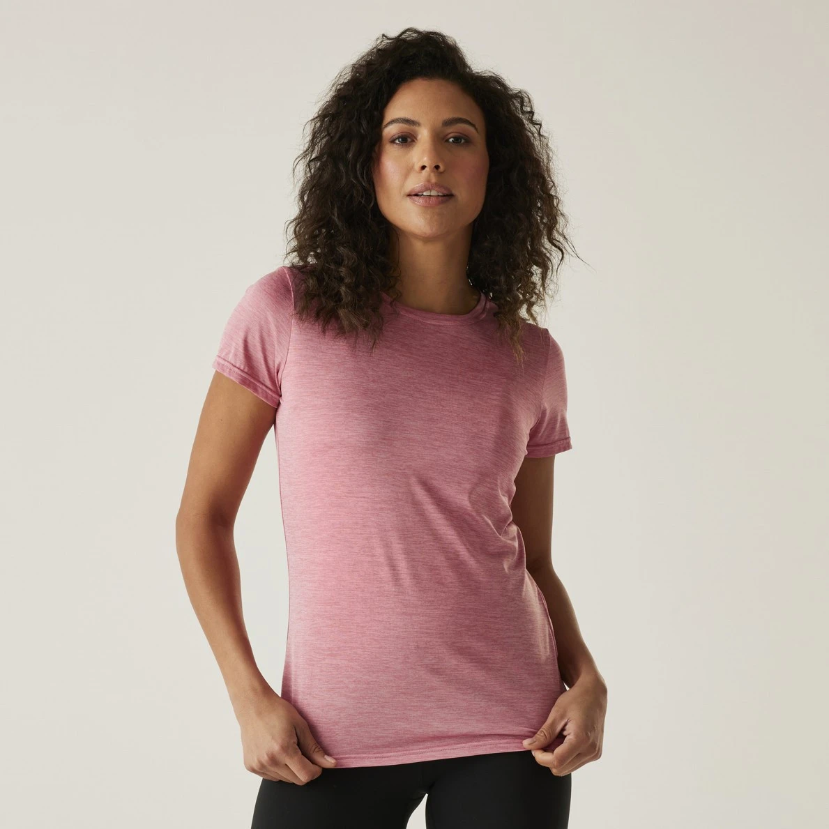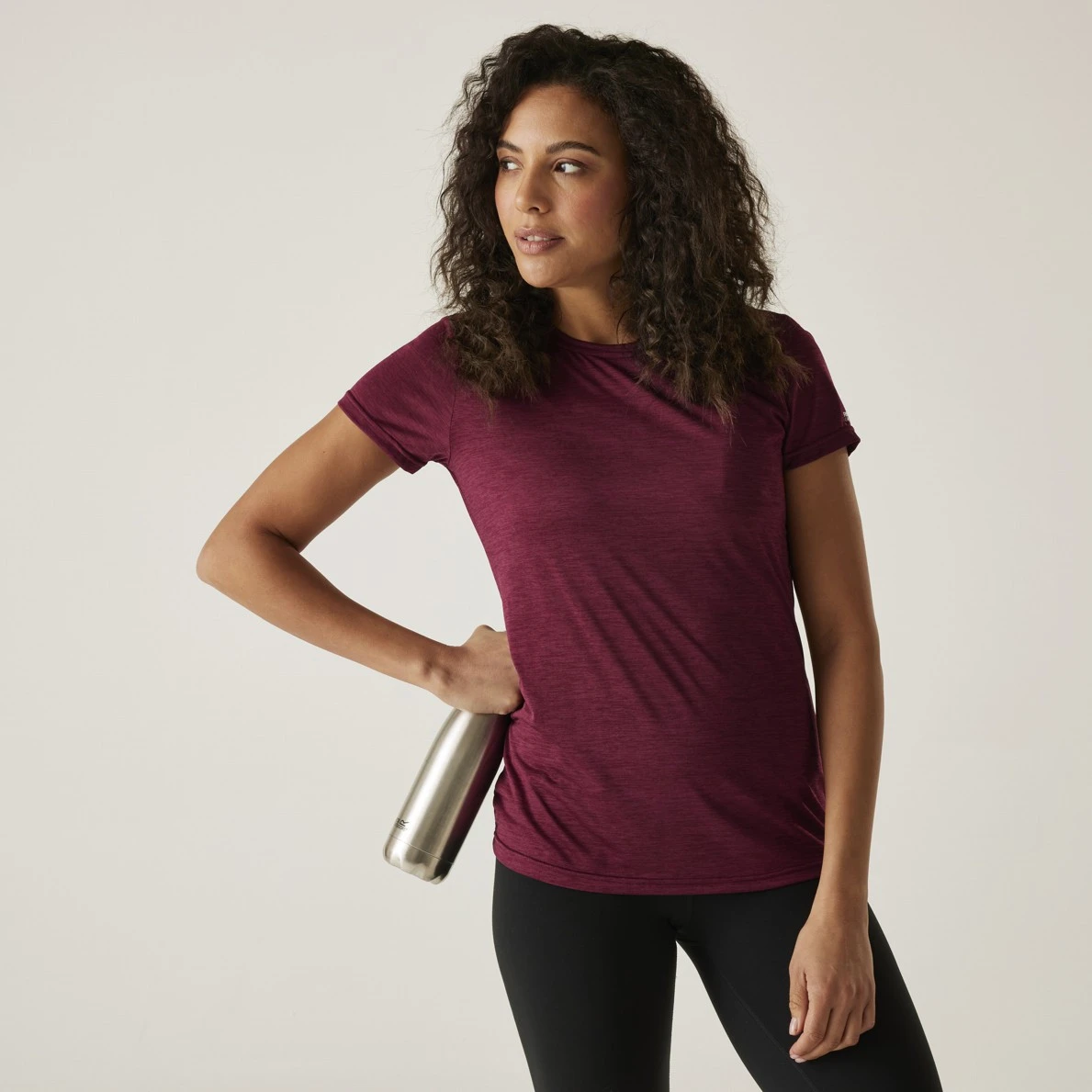 La camiseta para mujer Wm Fingal Edition Regatta impresiona por su tejido de punto reciclado jaspeado, su buen rendimiento de succión, su rápido secado y su durabilidad.