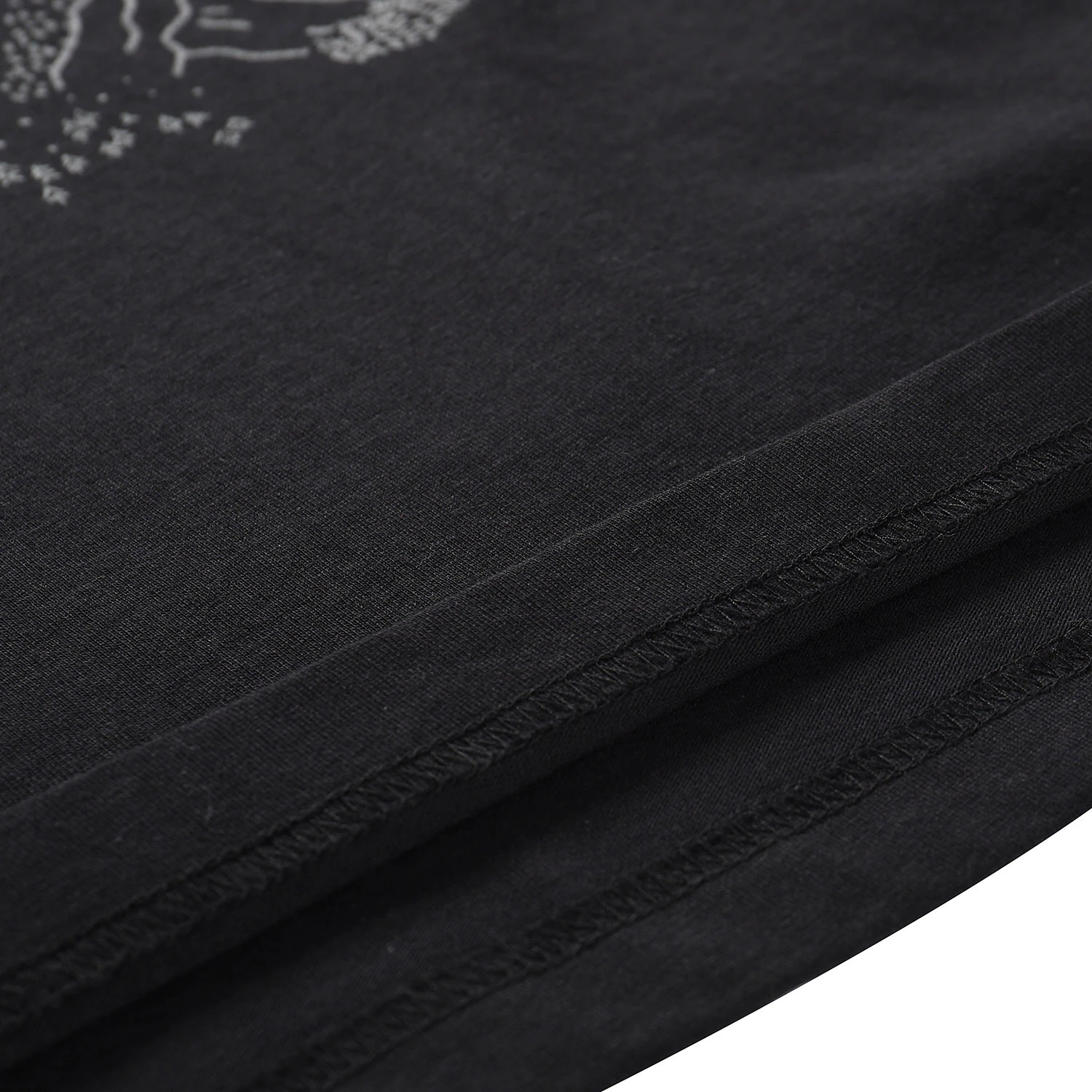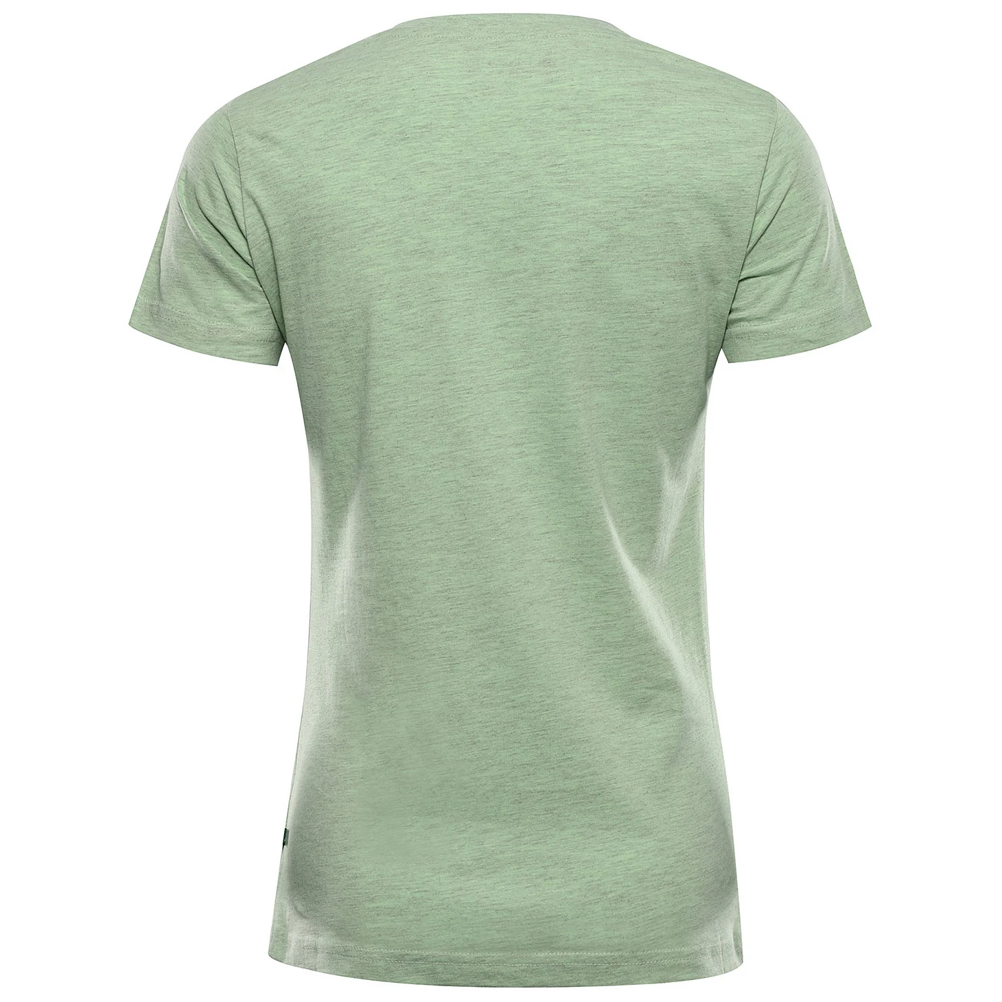Absorbe la humedad del cuerpo hacia la superficie del tejido, seca rápidamente y mantiene así la temperatura corporal óptima. La camiseta tiene un favorecedor corte semi ajustadoque realza la figura y proporciona libertad de movimiento. El aspecto moderno se complementa con el diseño jaspeado del material, un estampado de buen gusto en la parte delantera y un pequeño parche en la costura lateral. Es una prenda versátil que apreciarás al practicar senderismo, marcha nórdica, escalada en bloque, pero también para el uso diario en la ciudad.