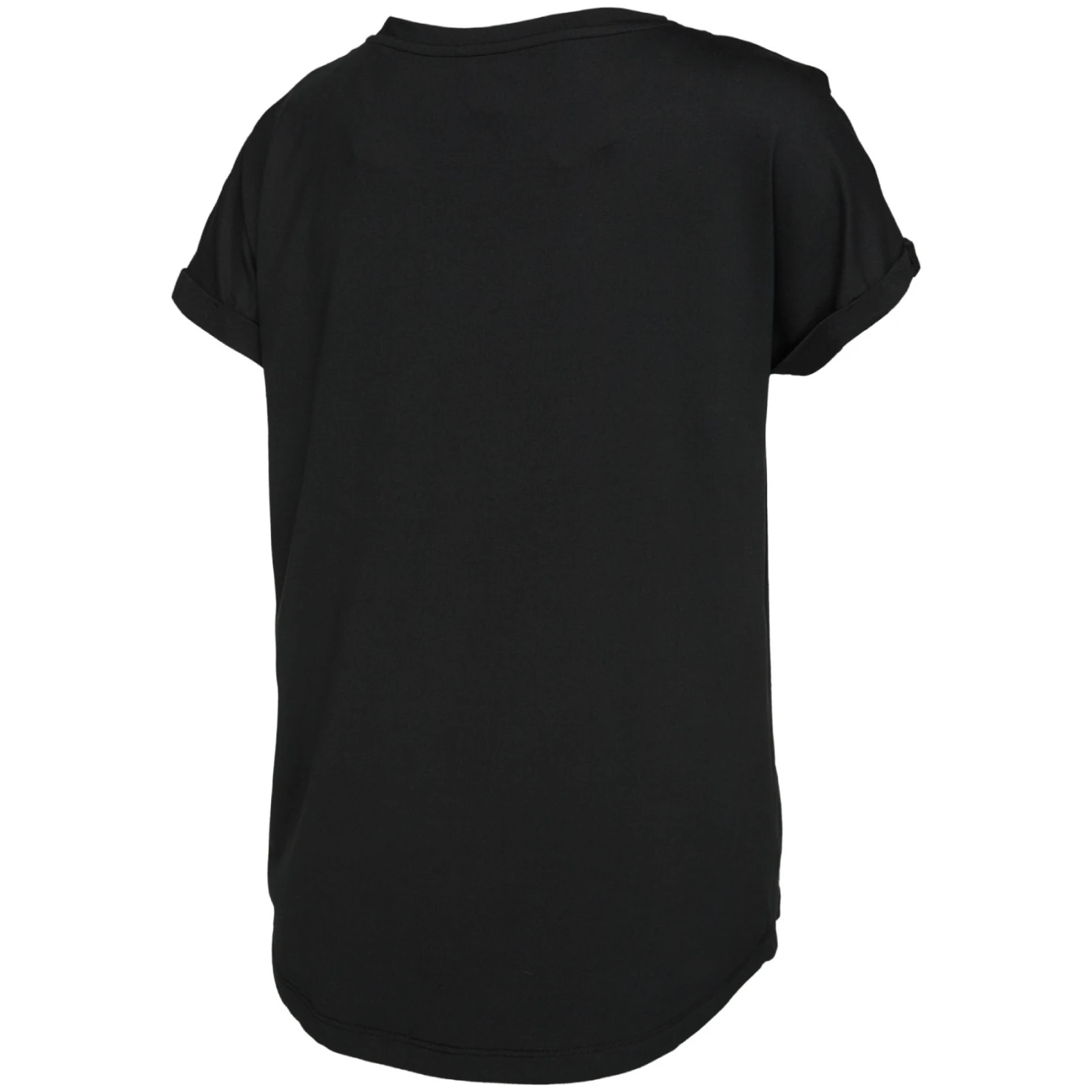 La camiseta está fabricada con material reciclado, concretamente con una combinación de poliéster y elastano, que garantiza ligereza, transpirabilidad y durabilidad. Gracias al corte holgado con escote barco y dobladillo sin cordones, la camiseta es decente para cualquier tipo de cuerpo y cómoda de llevar durante todo el día.