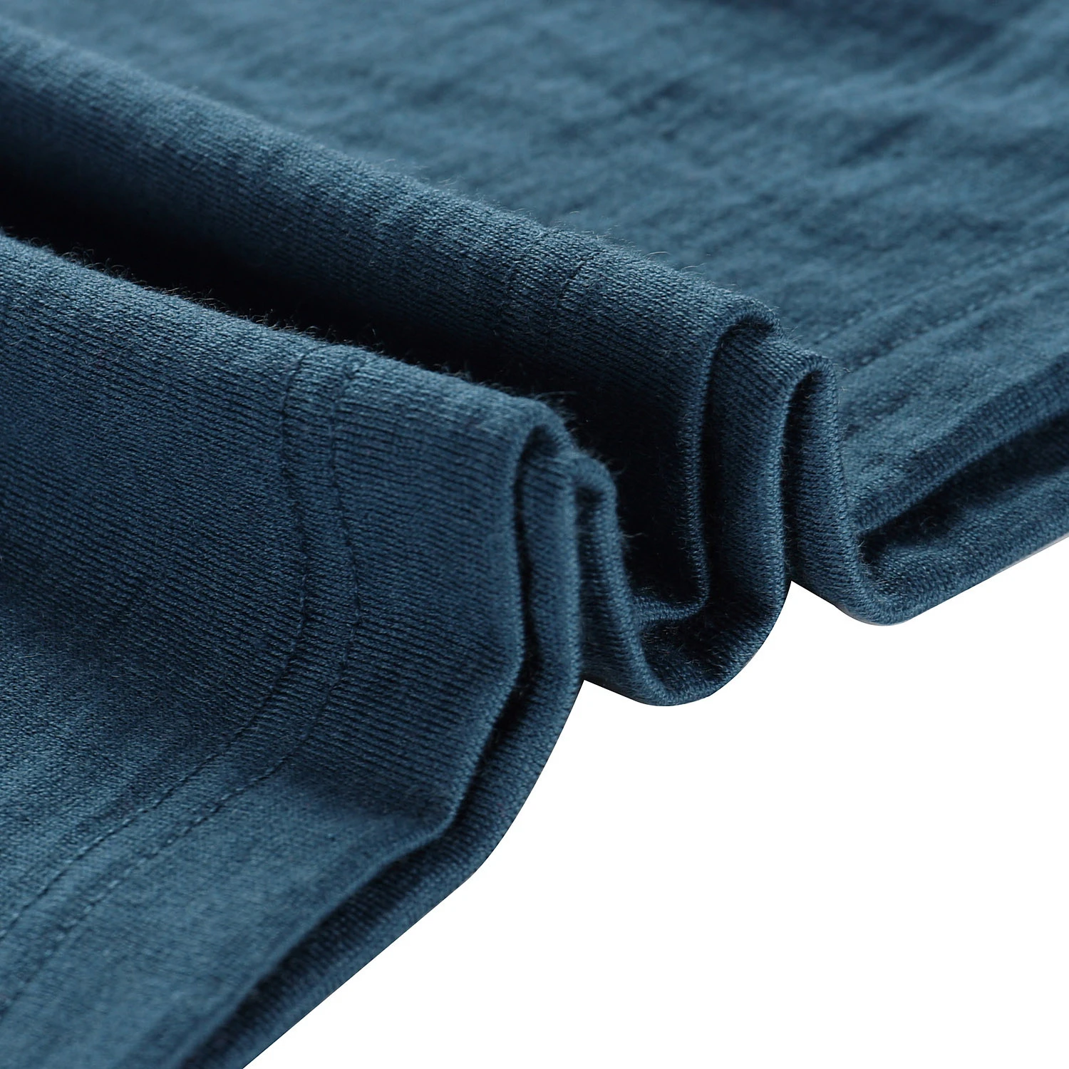 El material es transpirable, antibacteriano y resistente al olor. La fina estructura de las fibras es suave para la piel de los niños, por lo que la camiseta no pica ni irrita. La mezcla de nailon aumenta la resistencia y la elasticidad, lo que hace que la camiseta mantenga su forma incluso después de muchos lavados.
