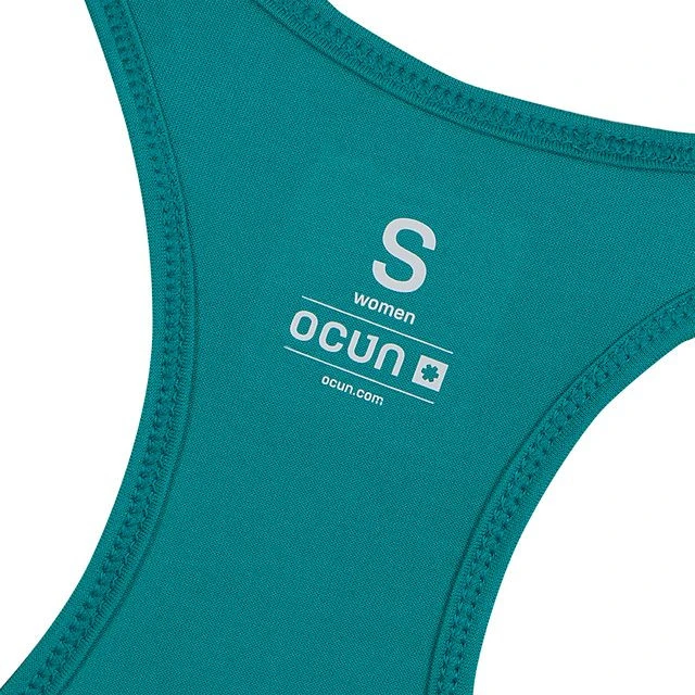 El top Fionna de Ocún está hecho de un material súper fino que casi parece una malla, es de secado rápido y transpirable. Debe combinarse con un sujetador deportivo.