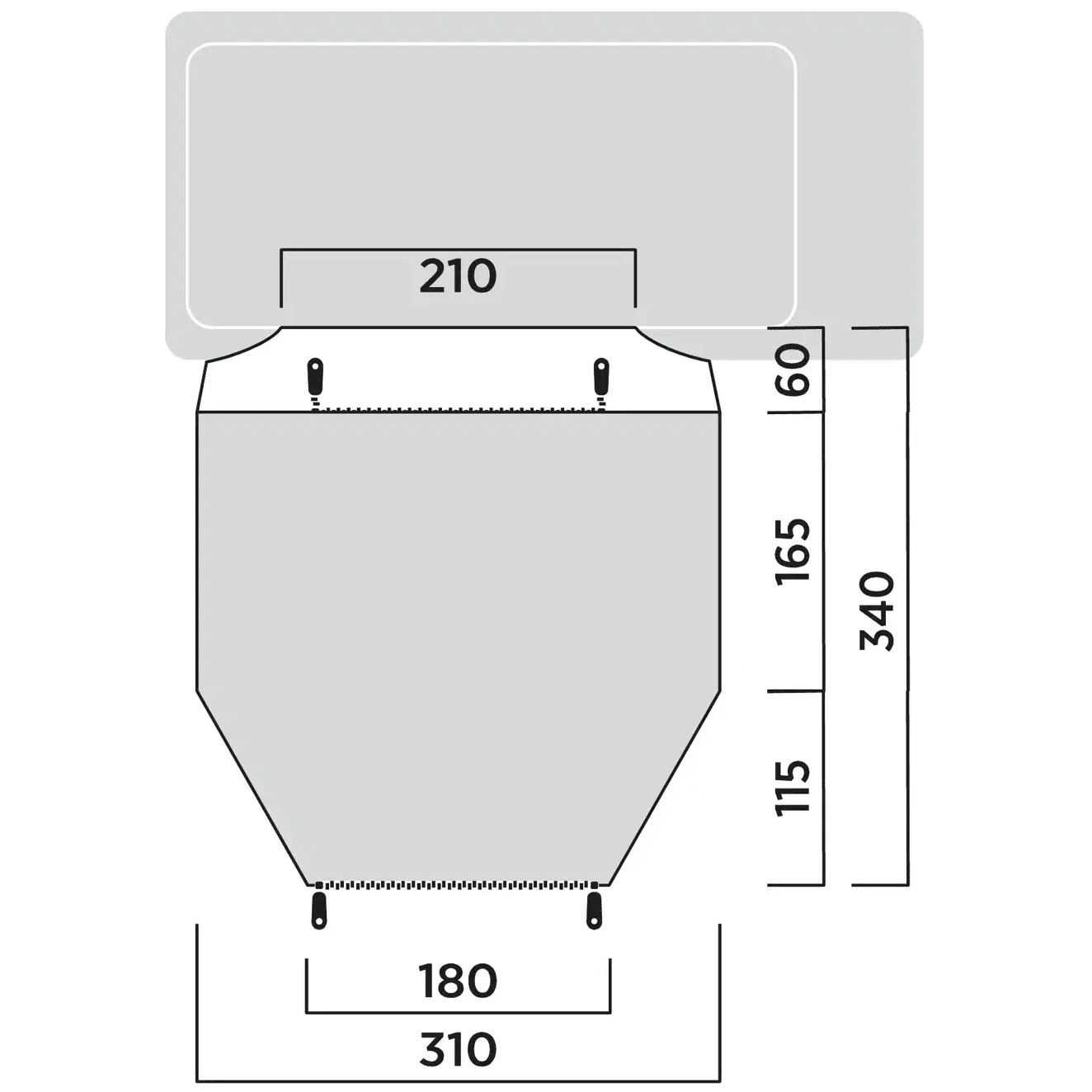 Cubretecho = la parte superior de una tienda de doble techo. Caracterizado por la columna de agua = capacidad del material para resistir la presión del agua. Indicada en milímetros.