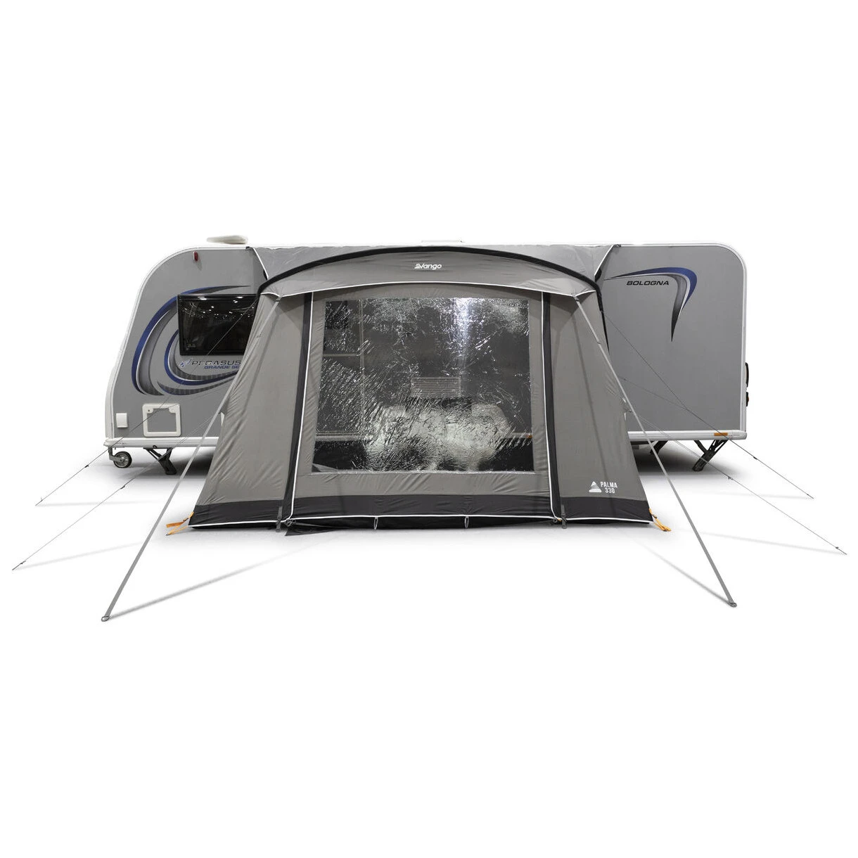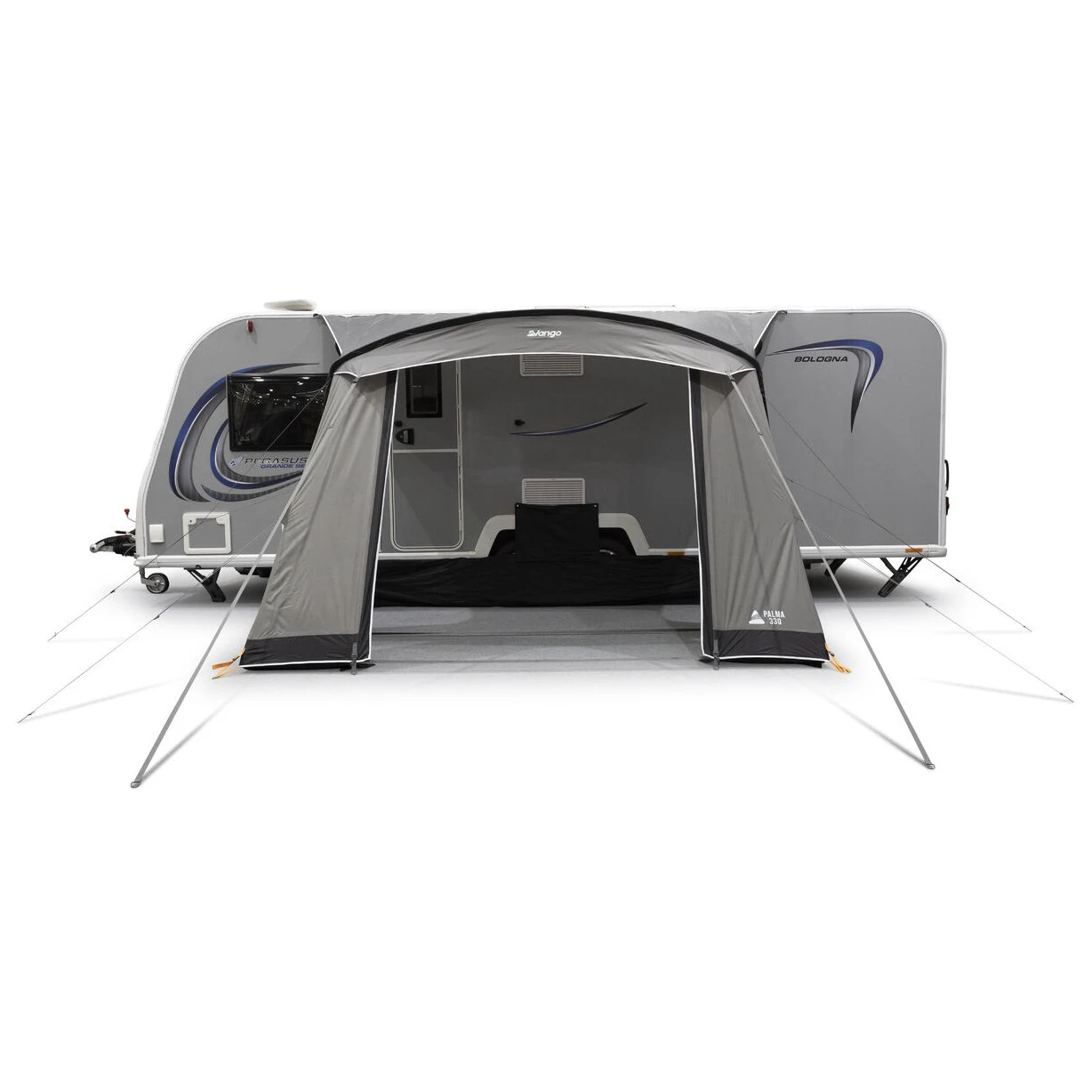 El paquete incluye un faldón cortavientos y una cubierta para el paso de rueda, que aumentan el confort térmico y protegen contra las corrientes de aire. La estabilidad en condiciones exigentes está respaldada por el sistema TBSII, puntos de anclaje ajustables, estacas de acero y correas Storm Straps. El práctico sistema de suspensión SkyTrack II permite la fácil fijación de iluminación o accesorios de almacenamiento. El Palma 330 es, por tanto, un avance fiable y versátil, preparado para cualquier aventura.