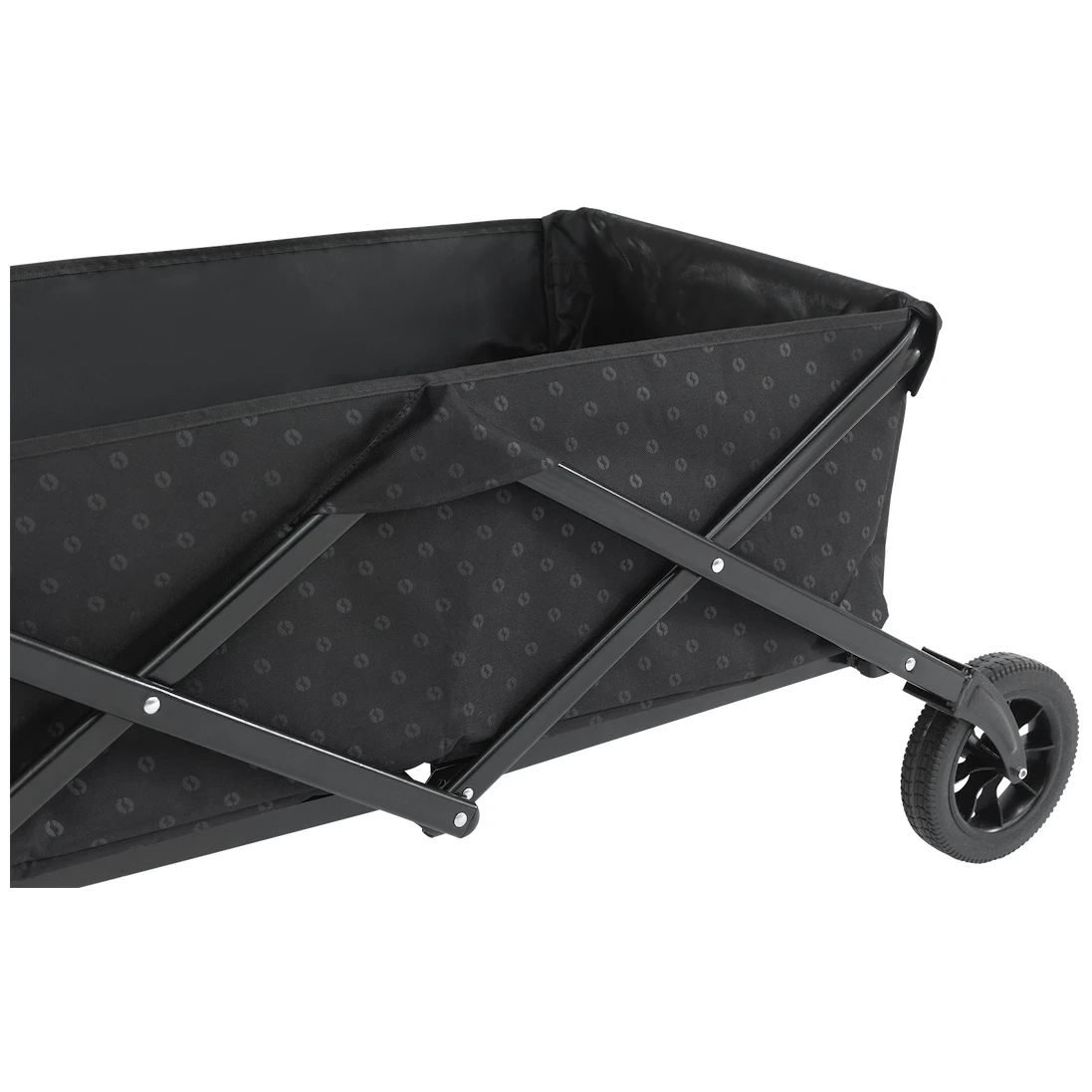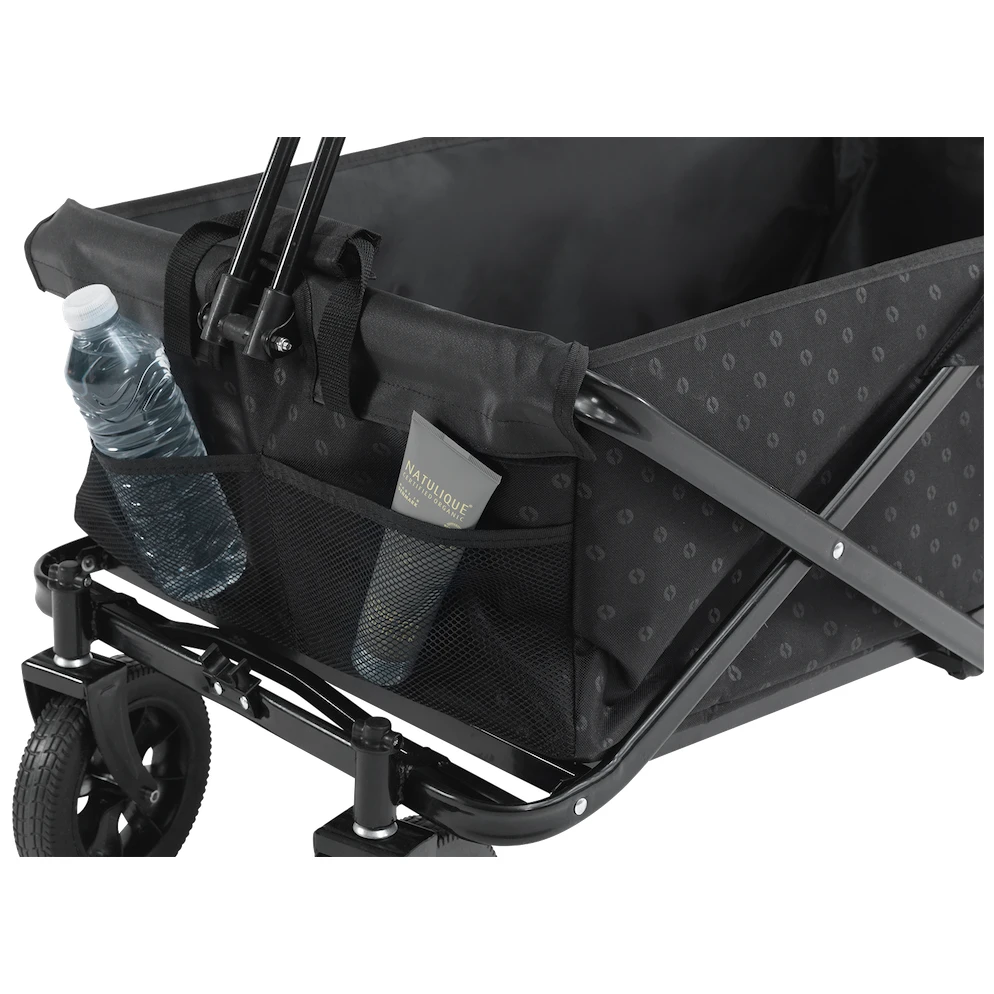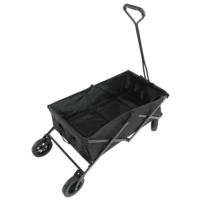El carrito está equipado con una construcción de acero con recubrimiento en polvo de alta resistencia y durabilidad, lo que permite plegarlo y desplegarlo en cuestión de segundos. Entre otras ventajas se incluyen ruedas duraderas de poliuretano, con las que no tendrá que temer ni los terrenos irregulares. Las ruedas también son resistentes a los pinchazos y los impactos. También apreciará el asa telescópica, que se puede extender hasta 120 cm del suelo y se puede bloquear en posición vertical. En el exterior hay dos bolsillos de malla. Incluye una bolsa de transporte para guardarlo y transportarlo fácilmente.
