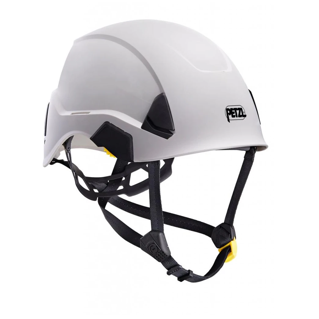 El casco de trabajo STRATO es muy ligero y cómodo gracias a los sistemas CENTERFIT y FLIP & FIT, que garantizan un ajuste seguro del casco a la cabeza. La resistencia ajustable de la correa de la barbilla es ideal para trabajar en altura y en el suelo. La carcasa exterior sin ventilación protege contra riesgos eléctricos, salpicaduras de metal fundido y llamas.