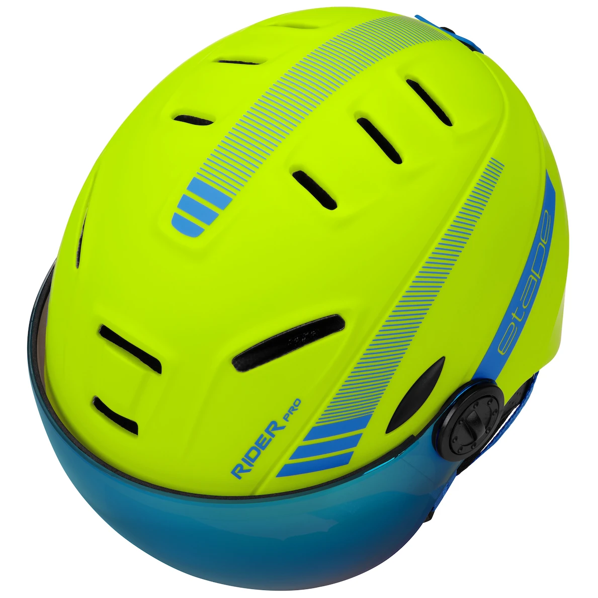El casco de esquí infantil Rider Pro impresiona a primera vista por su moderno diseño y su alto nivel de elaboración. Las suaves cubiertas de las orejas, que se acoplan perfectamente a la calota del casco, aumentan la comodidad de uso sin comprometer la protección de la cabeza. La ventilación de alta calidad se consigue mediante 12 aberturas de ventilación con regulación continua. Visera desmontable con filtro de categoría S2, está equipada con tecnología ZeroFog para evitar el empañamiento y un revestimiento antiarañazos. Se maneja cómodamente, con sólo plegarla, y puede cambiarse fácilmente, si es necesario, por otro tipo. La visera, que forma parte del casco y se ajusta perfectamente a él, y el diseño sin marco garantizan que la nieve de la superficie se deslice rápidamente o simplemente se limpie con un guante, la ventaja es también un amplio ángulo de visión superior. Todos los cascos de esquí y snowboard Etape están homologados según la norma europea EN 1077 (ČSN EN 1077).