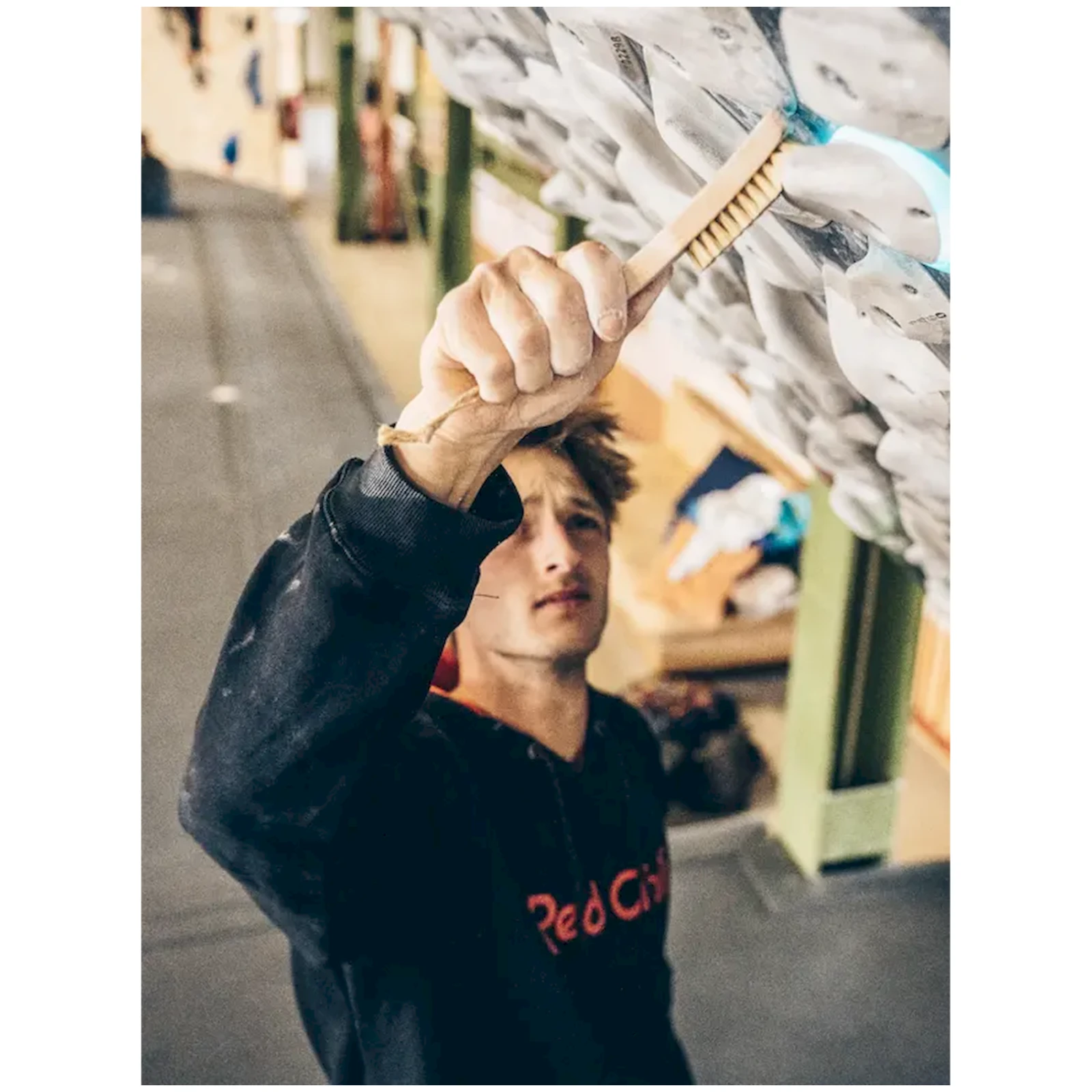 Dirty Hairy es un cepillo de búlder fiable que elimina eficazmente el exceso de magnesio de las presas; la suciedad en los agarres puede provocar fácilmente resbalones no deseados.
