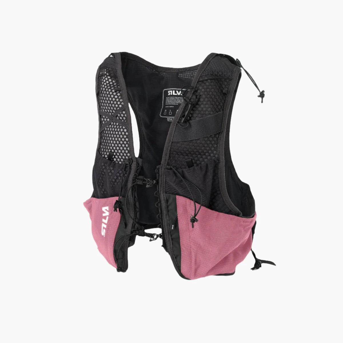 La parte trasera tiene dos bolsillos: un bolsillo longitudinal inferior y el bolsillo trasero principal, que tiene dos salidas para el cable de un frontal o el tubo de la bolsa de hidratación. En el interior hay un pequeño bolsillo para fijar la batería. Los bastones se pueden sujetar con presillas ajustables flexibles o colocarse en una bolsa Quiver Silva, que permite retirar los bastones del chaleco más fácilmente durante las carreras (bolsa no incluida).