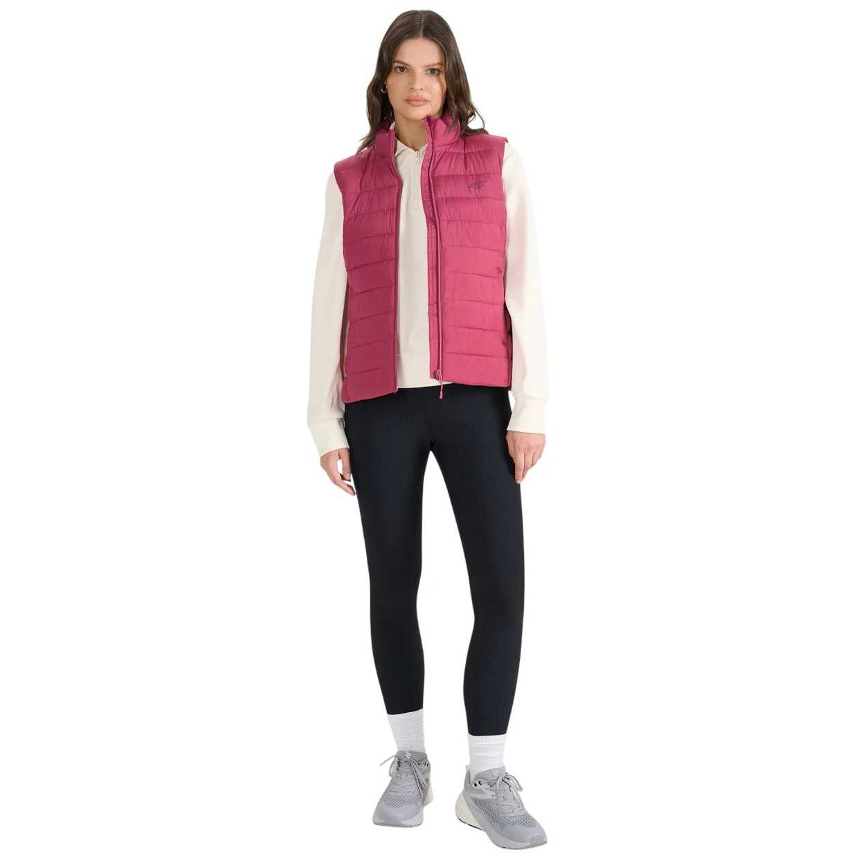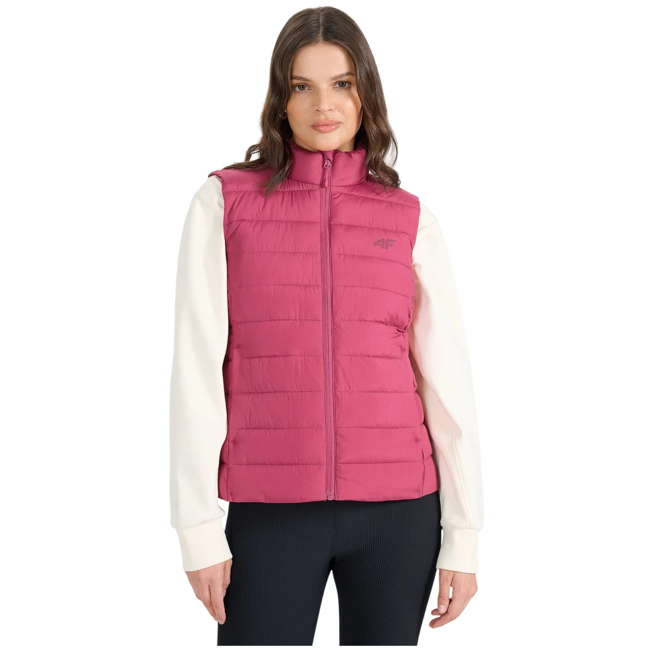 El chaleco para mujer Vest Jacket F218 de la marca 4F es una capa ligera y práctica para los días más cálidos y las estaciones de transición. Gracias a su corte slim, se adapta a la figura y realza la línea deportiva del cuerpo. El acolchado horizontal no solo realza el aspecto outdoor, sino que también distribuye uniformemente el relleno y mejora el aislamiento térmico. El chaleco se pliega fácilmente, no ocupa espacio y es ideal para el uso diario y las actividades deportivas.