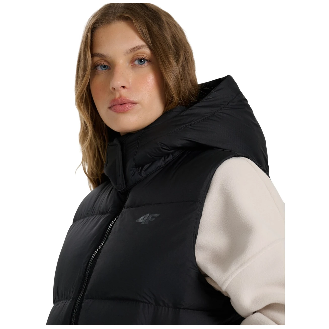 El chaleco para mujer Vest Jacket F223 4F combina un diseño moderno con alta funcionalidad y confort térmico natural. Gracias al relleno de plumón de pato 90/10, proporciona el máximo aislamiento en condiciones secas y frías. La capa hidrofóbica reduce la absorción de humedad y protege contra la nieve y la llovizna. El corte oversize ofrece estilo y libertad de movimiento, mientras que el largo estándar hasta las caderas asegura un uso versátil en la vida diaria.