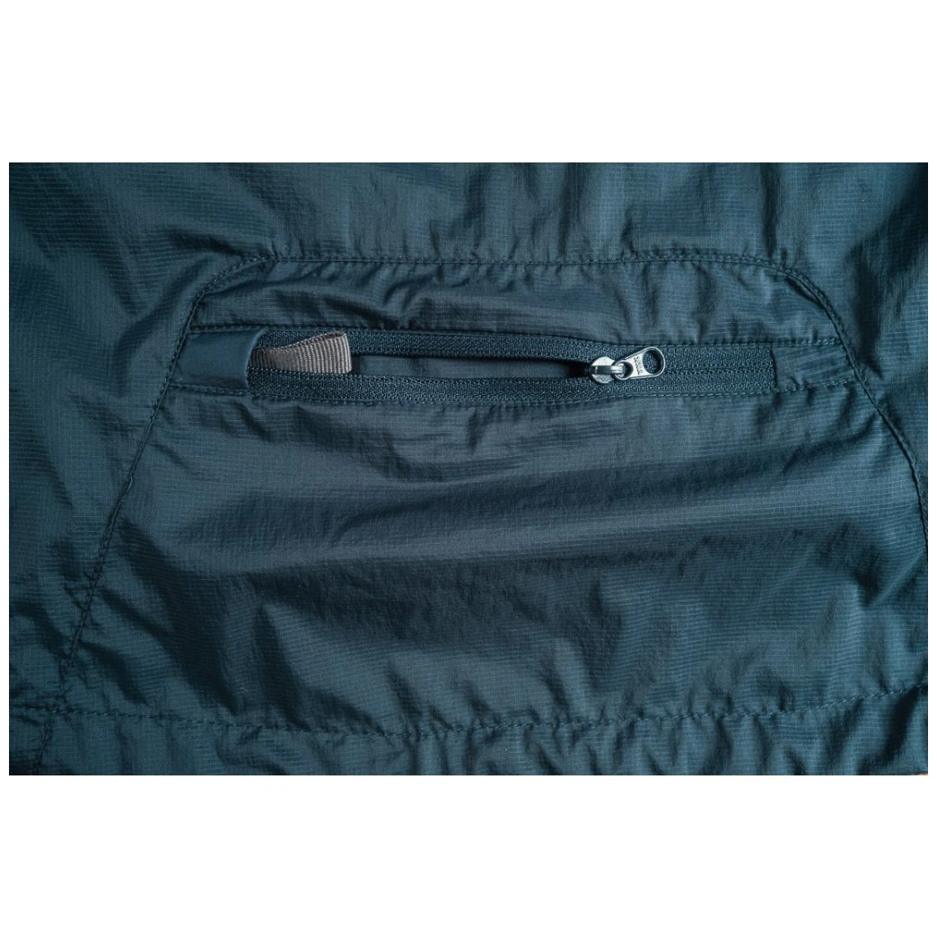El material de fabricación de esta chaqueta es Nylon Airpore, que es un tejido de nailon ultraligero. Este material es parcialmente hidrófugo, resistente al viento y muy transpirable (las dos últimas propiedades las proporcionan las fibras ultrafinas 15D). El tratamiento especial C6 DWR permite utilizar la chaqueta sin problemas incluso con lluvia ligera. La resistencia y durabilidad de la chaqueta están garantizadas por el tejido RipStop, que tiene fibras más gruesas entre las más finas, lo que la hace menos propensa a desgarrarse. Se aplica un tratamiento de crepé a la estructura de la superficie, lo que hace que el tejido sea agradablemente antiadherente al tacto. Aquí se utilizan cremalleras de la empresa japonesa YKK.