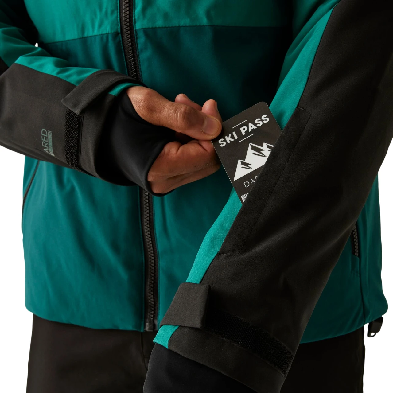 La chaqueta ofrece todos los elementos importantes: bolsillo para el forfait, faldón para nieve fijo, bolsillo interior de malla con paño para las gafas y capucha técnica desmontable con ajuste y visera de alambre. Además, la capucha es compatible con el casco.