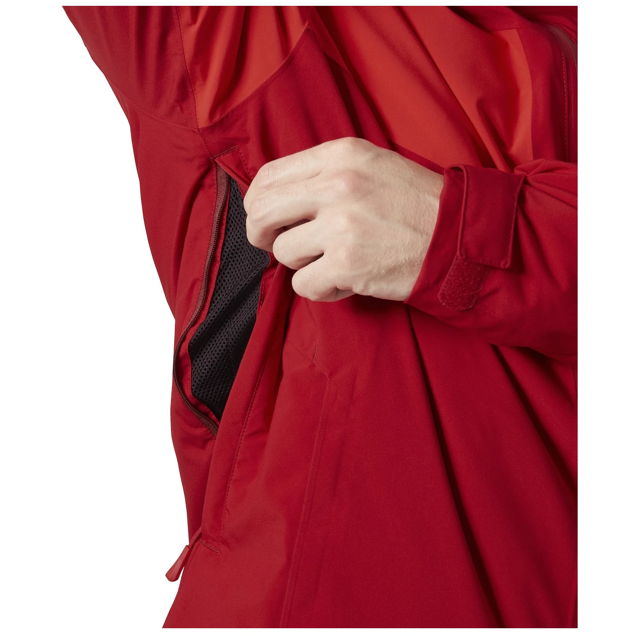 El corte cuenta con mangas y codos articulados para una libertad de movimiento sin restricciones. La capucha ajustable con visera es compatible con casco. Para mayor comodidad, la chaqueta tiene cremalleras de ventilación en las axilas, un paranieves ajustable, puños ajustables con cierre, cremallera completa con protector de barbilla de forro polar y solapa interior, y un lazo interno para colgar. El equipo se puede guardar cómodamente en dos bolsillos laterales con cremallera, un bolsillo en el pecho con cremallera y bolsillos interiores, también hay un bolsillo para el forfait y un bolsillo para las gafas en el pecho con un paño de limpieza en el interior.
