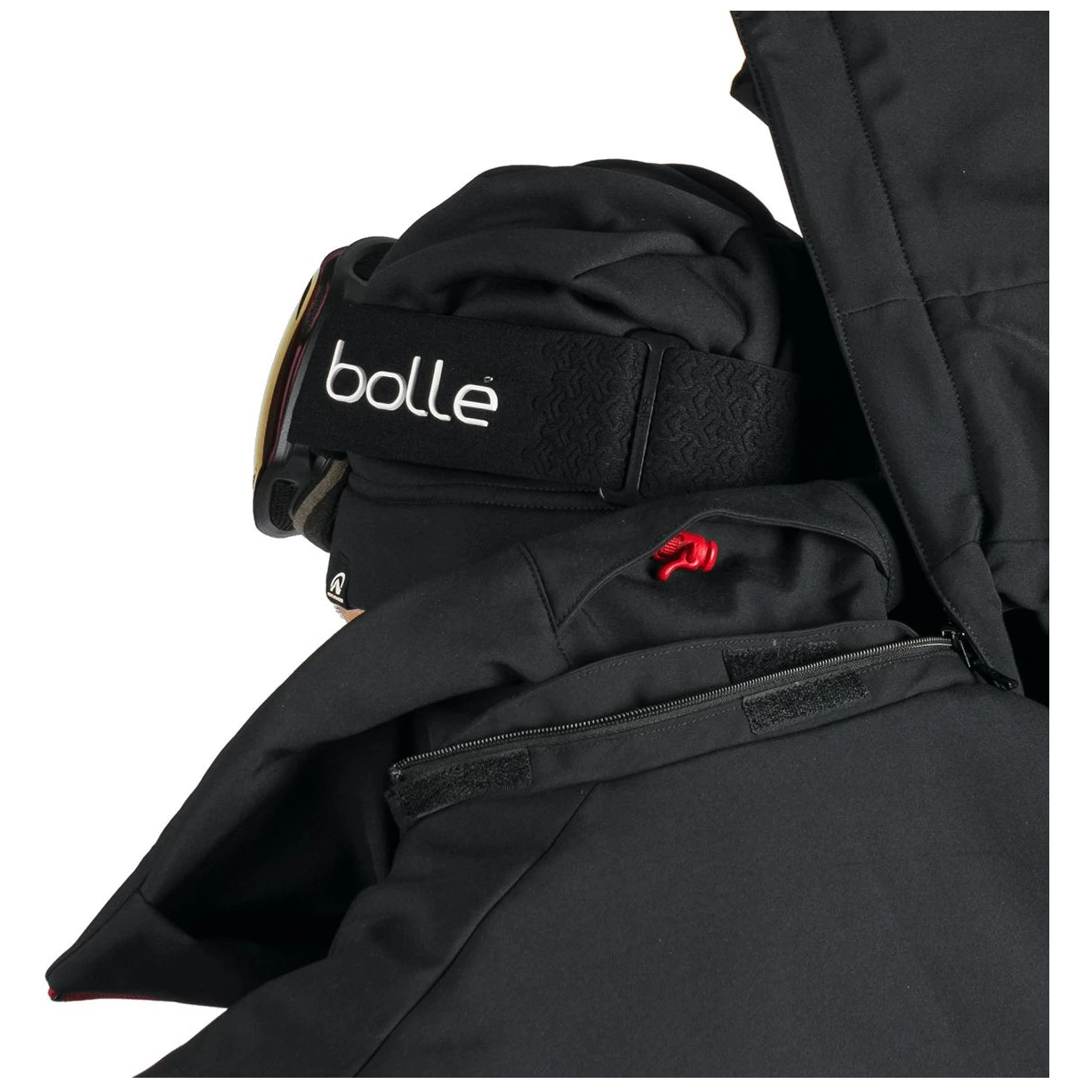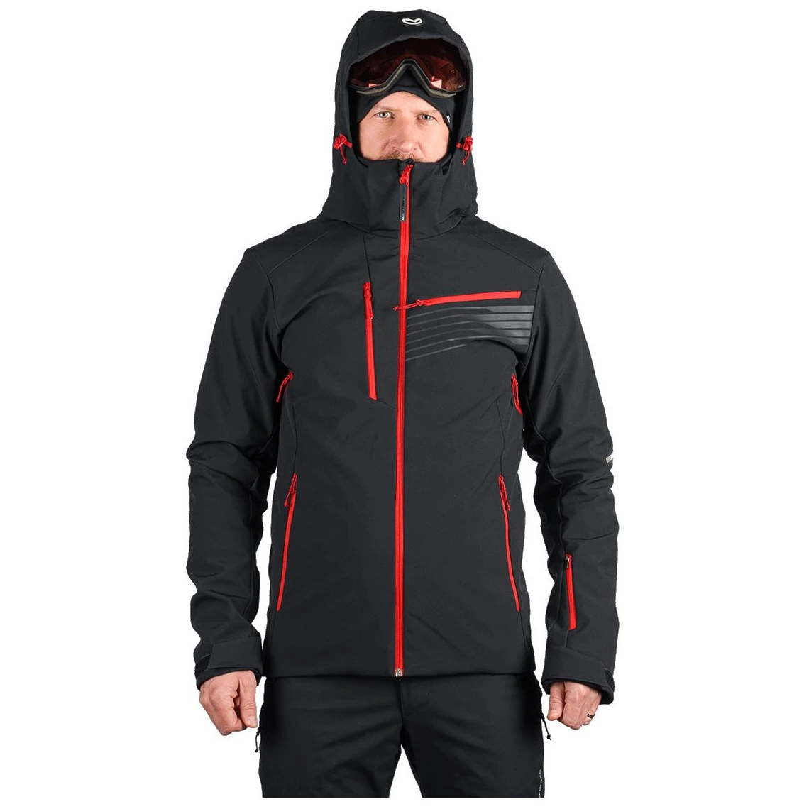 El práctico diseño incluye un bolsillo en el pecho con cremallera, dos bolsillos laterales con cremallera, un bolsillo en la manga para el forfait y un bolsillo interior para objetos de valor. Otro bolsillo interior está diseñado para guardar las gafas de esquí.