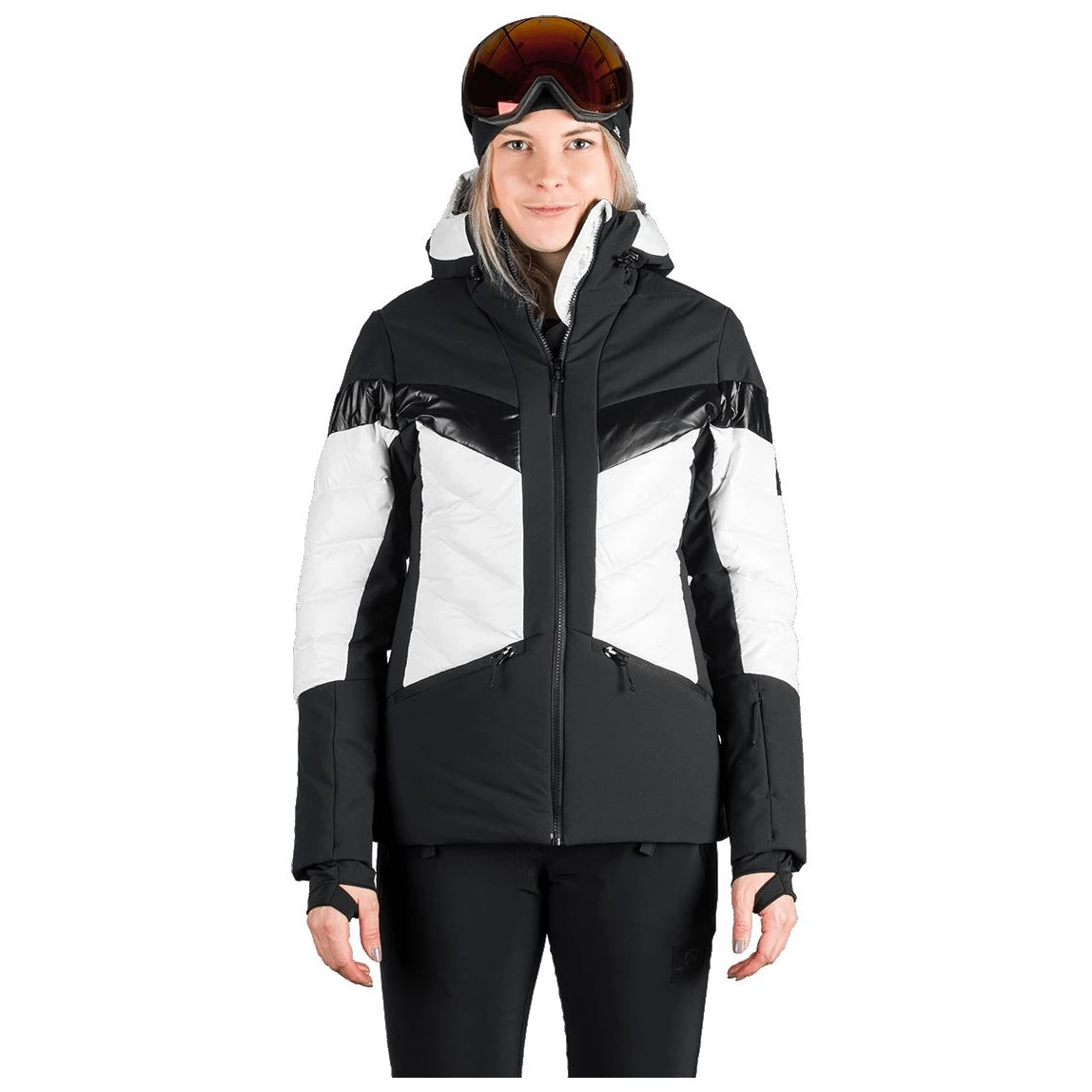 El confort térmico está garantizado por un aislamiento de calidad, un paranieves y una solapa interna contra el viento debajo de la cremallera. Para máxima comodidad, la chaqueta tiene mangas preformadas con puños elásticos de lycra que protegen contra la penetración del frío. Los prácticos bolsillos – dos laterales con cremallera, un bolsillo para el forfait en la manga, un bolsillo interior en el pecho y un bolsillo para las gafas – ofrecen suficiente espacio para todo lo necesario. La chaqueta Abigale es la combinación perfecta de estilo, funcionalidad y comodidad para los días de invierno.