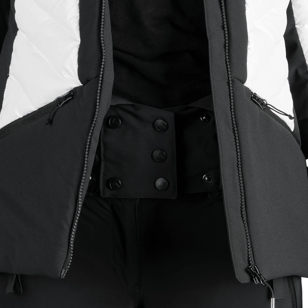 - bolsillos prácticos: dos laterales con cremallera, bolsillo para forfait, bolsillo en el pecho y bolsillo para gafas
