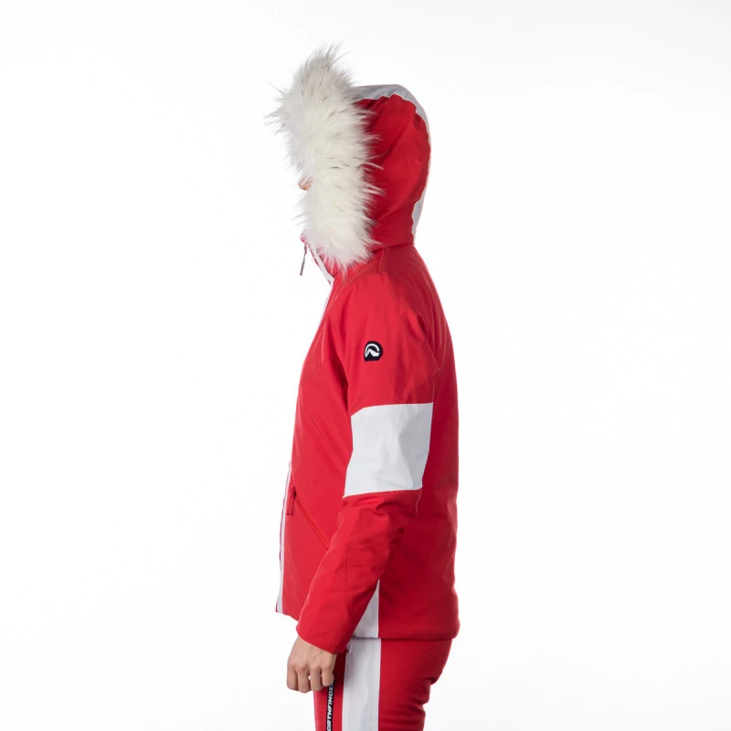 Chaqueta de esquí Zella para mujer de Northfinder con membrana 5000/5000 con varios accesorios como capucha desmontable, bolsillo para forfait, cremalleras YKK®, libre de PFC, etc. La chaqueta tiene un diseño moderno, parece deportiva, pero también se puede llevar como chaqueta de ocio.