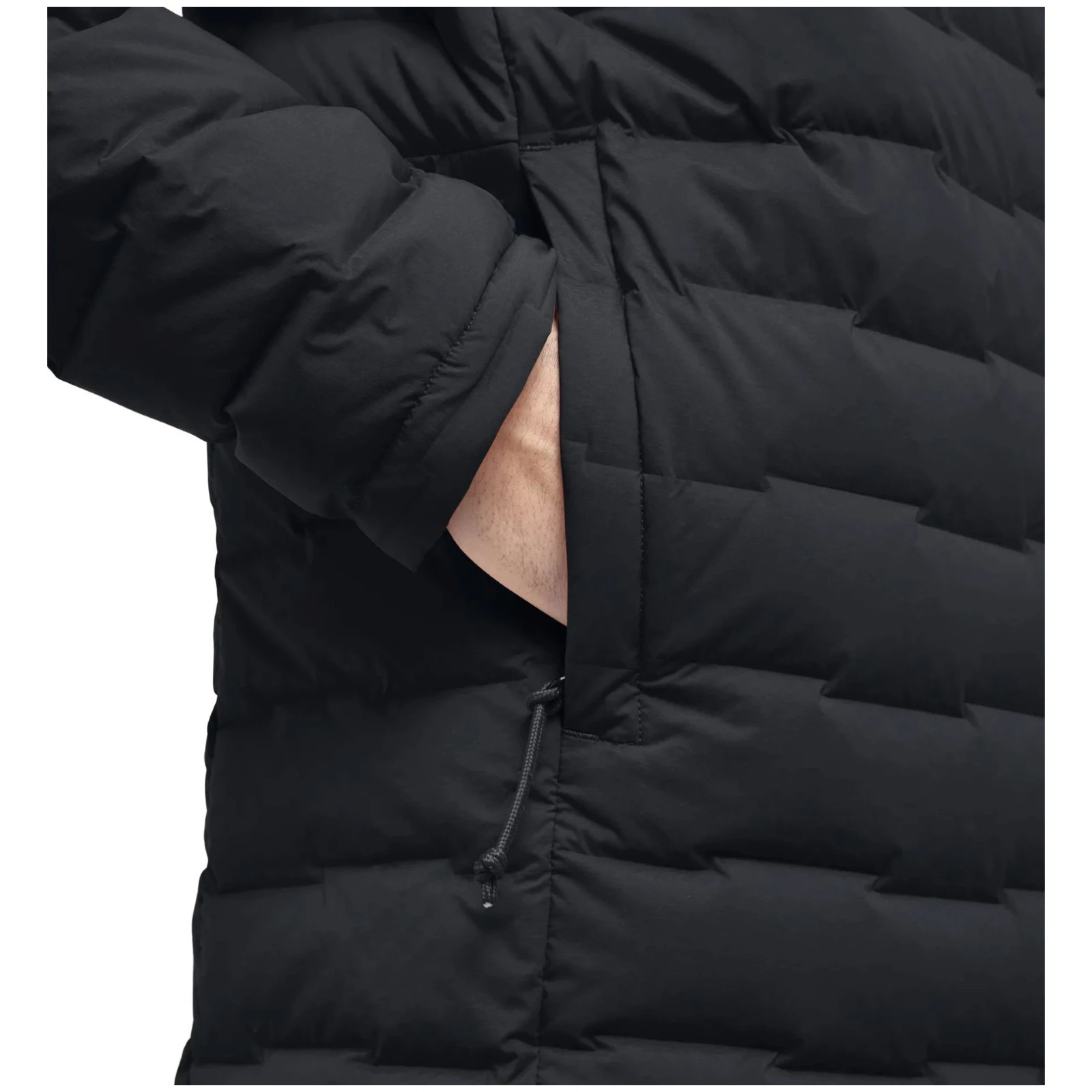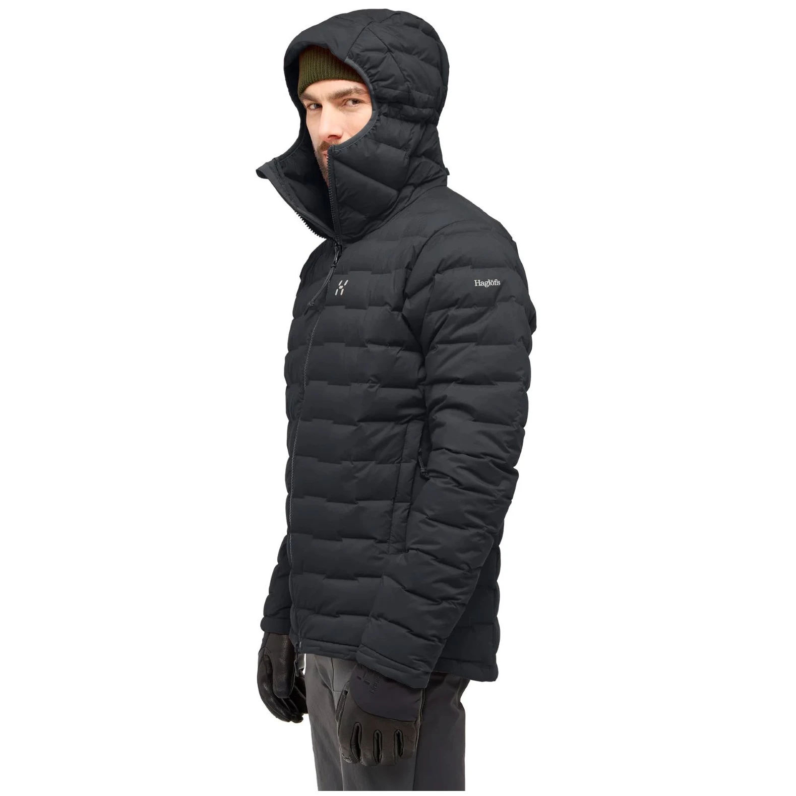 La chaqueta de plumón con capucha para hombre Haglöfs Spitz Down Hood está diseñada para proporcionar calor confiable incluso en condiciones de montaña difíciles y húmedas. Desarrollada teniendo en cuenta las necesidades de los alpinistas y amantes de la montaña, combina un material elástico bidireccional duradero con un tratamiento resistente al agua y relleno de plumón de ganso H DOWN Platinum con un poder de relleno de 800 CUIN. Este tipo de plumón es hidrofóbico y puede permanecer seco hasta 10 000 minutos incluso cuando se expone a la humedad. La construcción avanzada de compartimentos asegura un aislamiento uniforme sin puntos fríos, mientras que el diseño sin costuras contribuye a una mayor comodidad y durabilidad. La chaqueta se complementa con una capucha aislada compatible con casco que proporciona la máxima protección en condiciones exigentes.