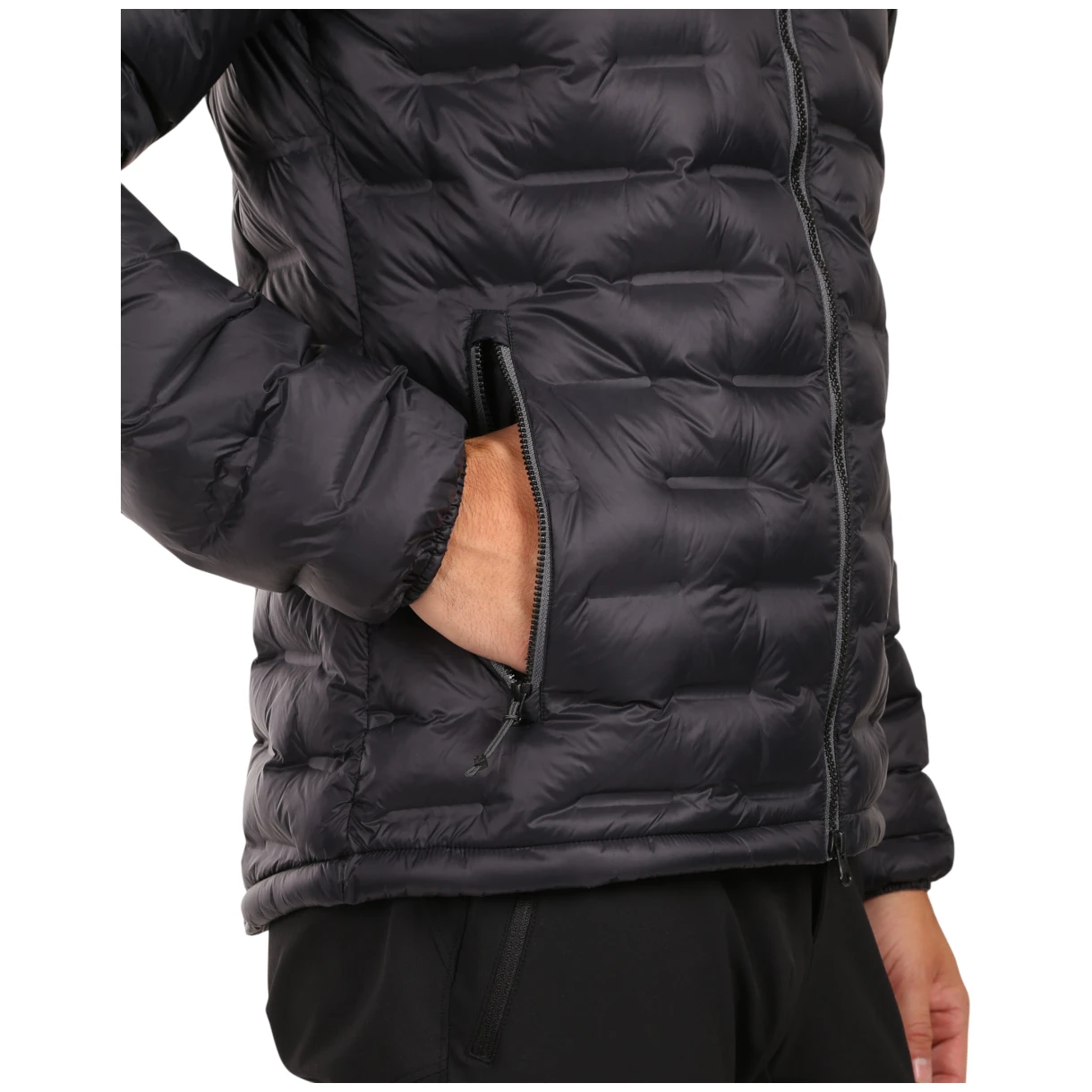 La chaqueta tiene un corte masculino que se adapta bien al cuerpo y detalles prácticos como bolsillos con cremallera y un cuello alto para una mejor protección contra el frío. Además, los materiales utilizados son PFC FREE, es decir, respetuosos con el medio ambiente.