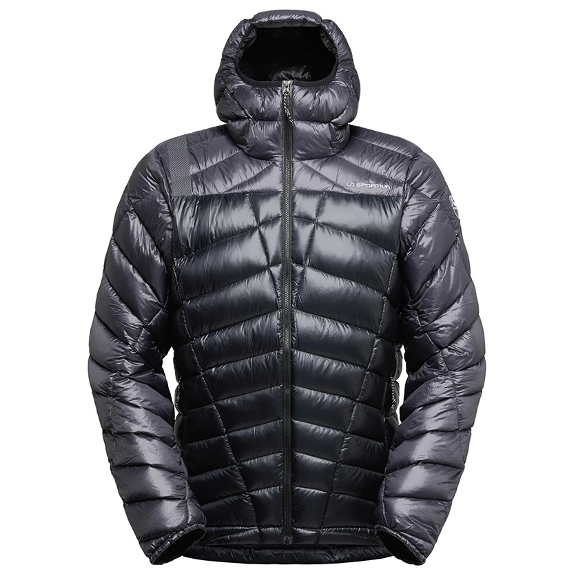 La chaqueta está fabricada con el probado material exterior Pertex® Quantum, que destaca por su excepcional relación entre ligereza, resistencia y transpirabilidad. Además, es resistente al viento y parcialmente resistente al agua. El relleno aislante está hecho de plumón de ganso italiano con un fill power de 1000 cuin (124 g), que representa el aislamiento más cálido y comprimible de la actualidad, y constituye aproximadamente la mitad del peso total de la chaqueta.