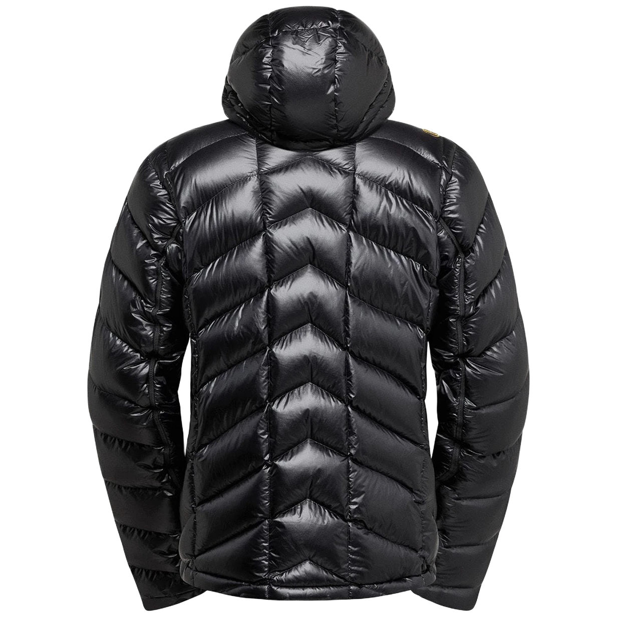 La chaqueta está fabricada con el probado material exterior Pertex® Quantum, que destaca por su excepcional relación entre ligereza, resistencia y transpirabilidad. Además, es resistente al viento y parcialmente resistente al agua. El relleno aislante está hecho de plumón de ganso italiano con un fill power de 1000 cuin (124 g), que representa el aislamiento más cálido y comprimible de la actualidad, y constituye aproximadamente la mitad del peso total de la chaqueta.