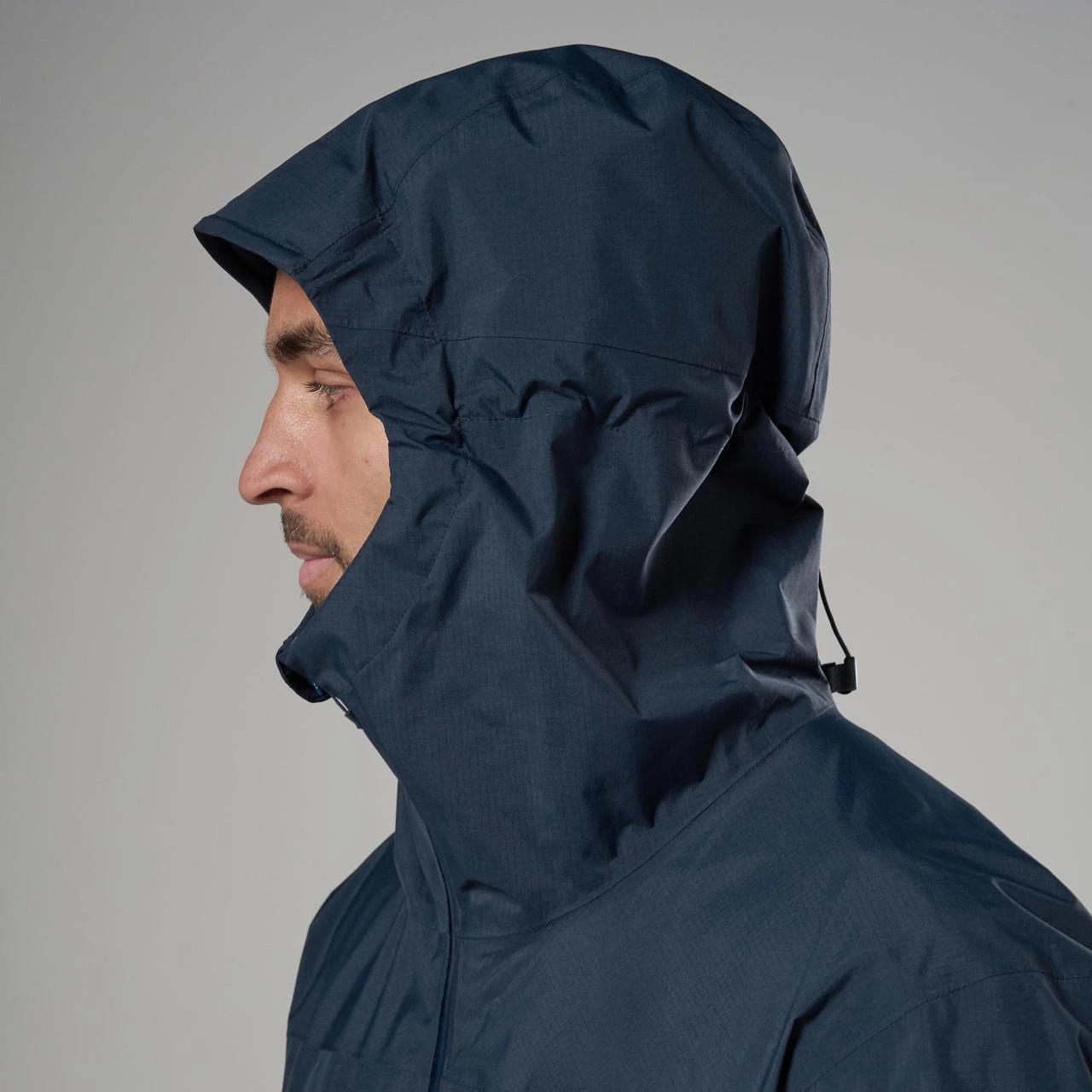 La construcción de la chaqueta está adaptada al movimiento dinámico. La reducción de costuras y cintas (construcción FGB) reduce el peso y mejora la transpirabilidad. Las costuras desplazadas y el corte ajustado favorecen el movimiento natural y la comodidad al llevar una mochila. La capucha Pivot 1 permite un ajuste rápido con una sola mano y, gracias a la visera integrada y la visera laminada, protege mejor la cara de la lluvia. La cremallera principal impermeable YKK Aquaguard® Natulon® de materiales reciclados ayuda a mantener la humedad fuera de la chaqueta. El bolsillo práctico en el pecho con cremallera es de fácil acceso incluso en movimiento y simplemente cabe la cartera, el móvil u otros objetos que quieras tener a mano rápidamente.
