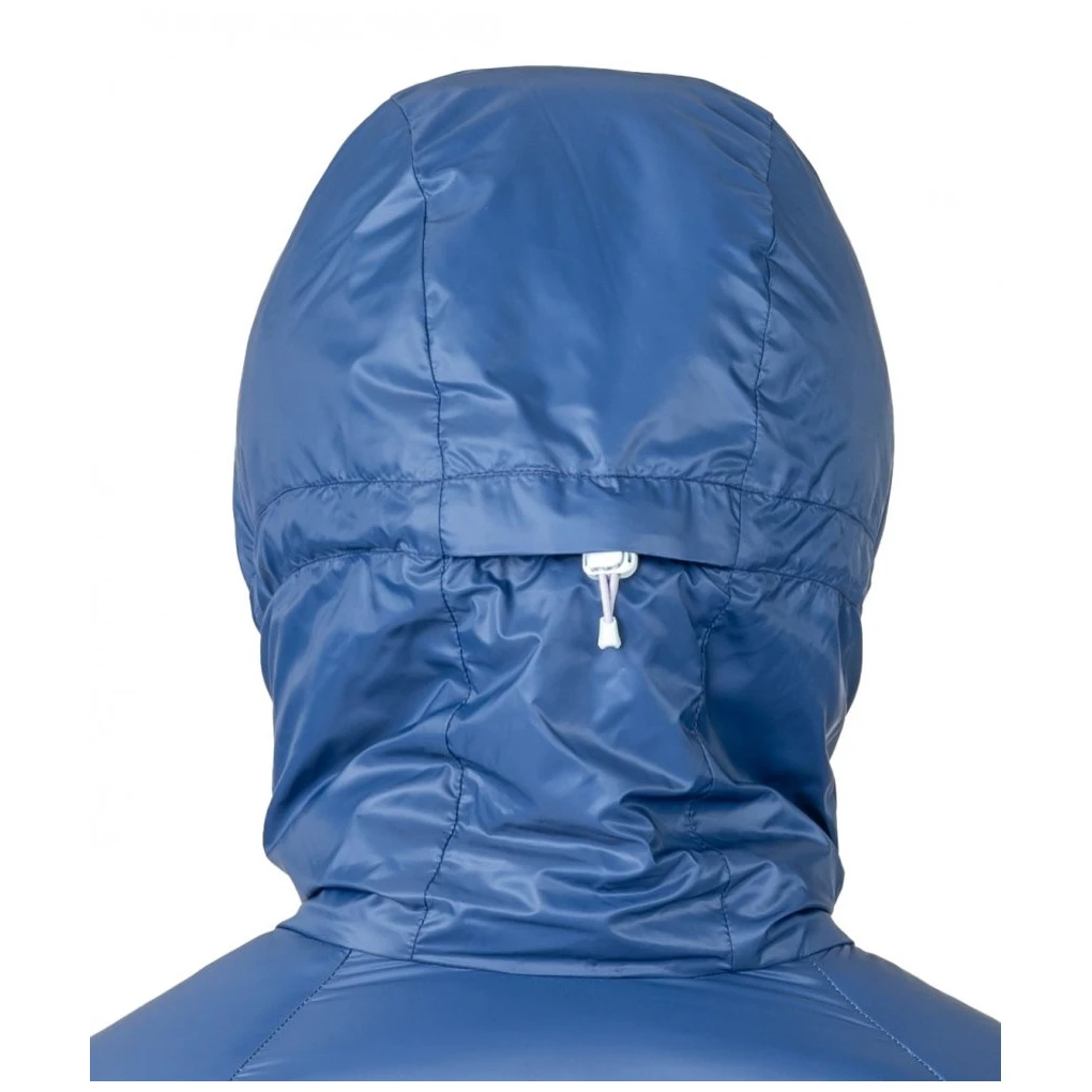 La chaqueta tiene una capucha totalmente ajustable y compatible con casco de escalada, un cuello alto que protege la parte inferior de la cara y cinco bolsillos: tres exteriores con cremallera (incluyendo uno en el pecho) y dos interiores, ideales para guantes. Los bolsillos están forrados con una mezcla de lana merino y sintético para un contacto agradable con la piel y protección de los objetos guardados. La cremallera principal bidireccional YKK está fabricada con materiales reciclados y reforzada con una solapa. Las mangas de corte anatómico con puños elásticos y el dobladillo ajustable garantizan comodidad y confort térmico. También se incluye una bolsa de transporte ultraligera.