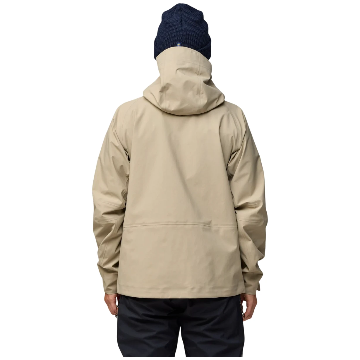 La capucha está ajustada para proporcionar una protección óptima sin restringir la visión ni el movimiento de la cabeza. Los espaciosos bolsillos verticales con cremallera permiten un fácil acceso incluso cuando se lleva una mochila o un arnés de escalada. La cremallera frontal bidireccional y las aberturas de ventilación en las axilas garantizan una regulación flexible de la temperatura y comodidad durante las actividades. La chaqueta está diseñada teniendo en cuenta la facilidad de reparación y la larga vida útil, para que sea una opción sostenible para tus aventuras.