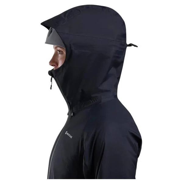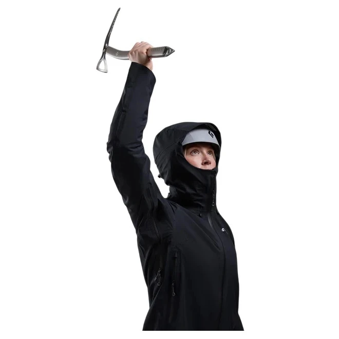 La chaqueta tiene una capucha de montaña totalmente ajustable compatible con casco, mangas de corte anatómico con puños de velcro, dobladillo inferior ajustable y cremallera bidireccional YKK AQUAGUARD. Los bolsillos están situados en alto para que sean accesibles incluso con un arnés de escalada o una mochila.
