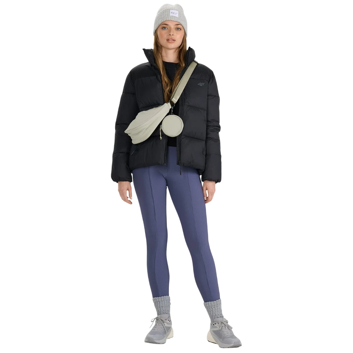 La chaqueta de plumón para mujer del fabricante 4F es una opción versátil para el uso diario y las actividades deportivas en climas fríos. Gracias al relleno sintético, aísla eficazmente el calor incluso en condiciones húmedas, se seca rápidamente y es fácil de mantener, lo que la convierte en una alternativa práctica a las chaquetas de plumón. La chaqueta tiene un corte regular y un largo estándar hasta las caderas, lo que garantiza un ajuste cómodo al cuerpo y total libertad de movimiento. El acolchado horizontal distribuye uniformemente el relleno y añade un aspecto clásico.