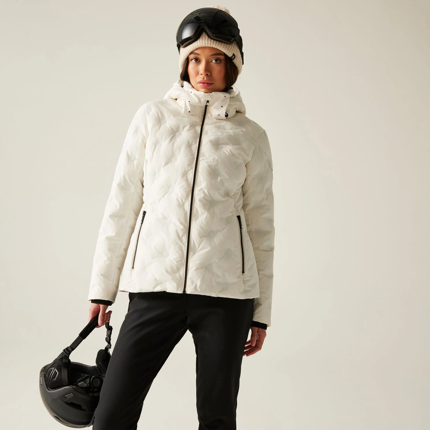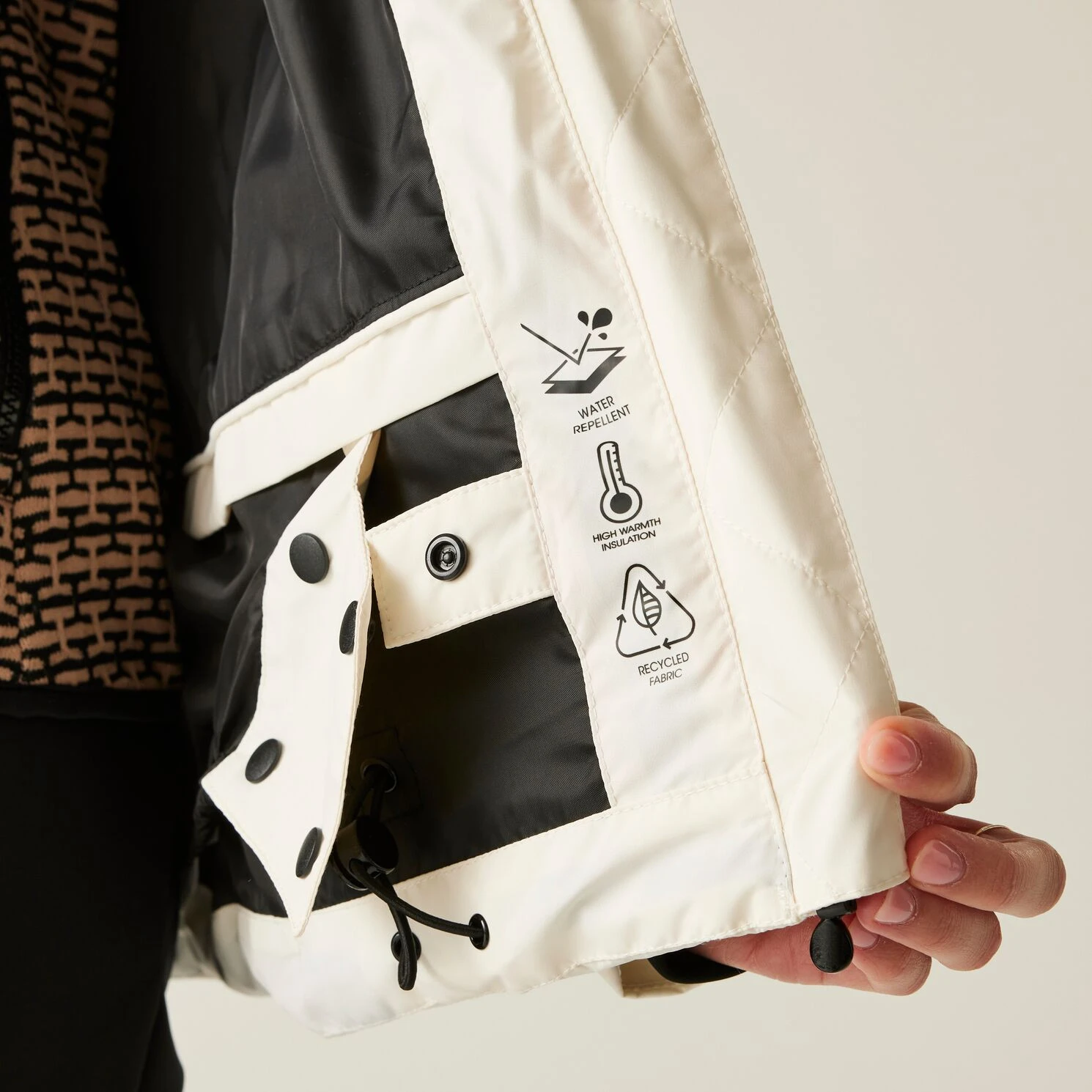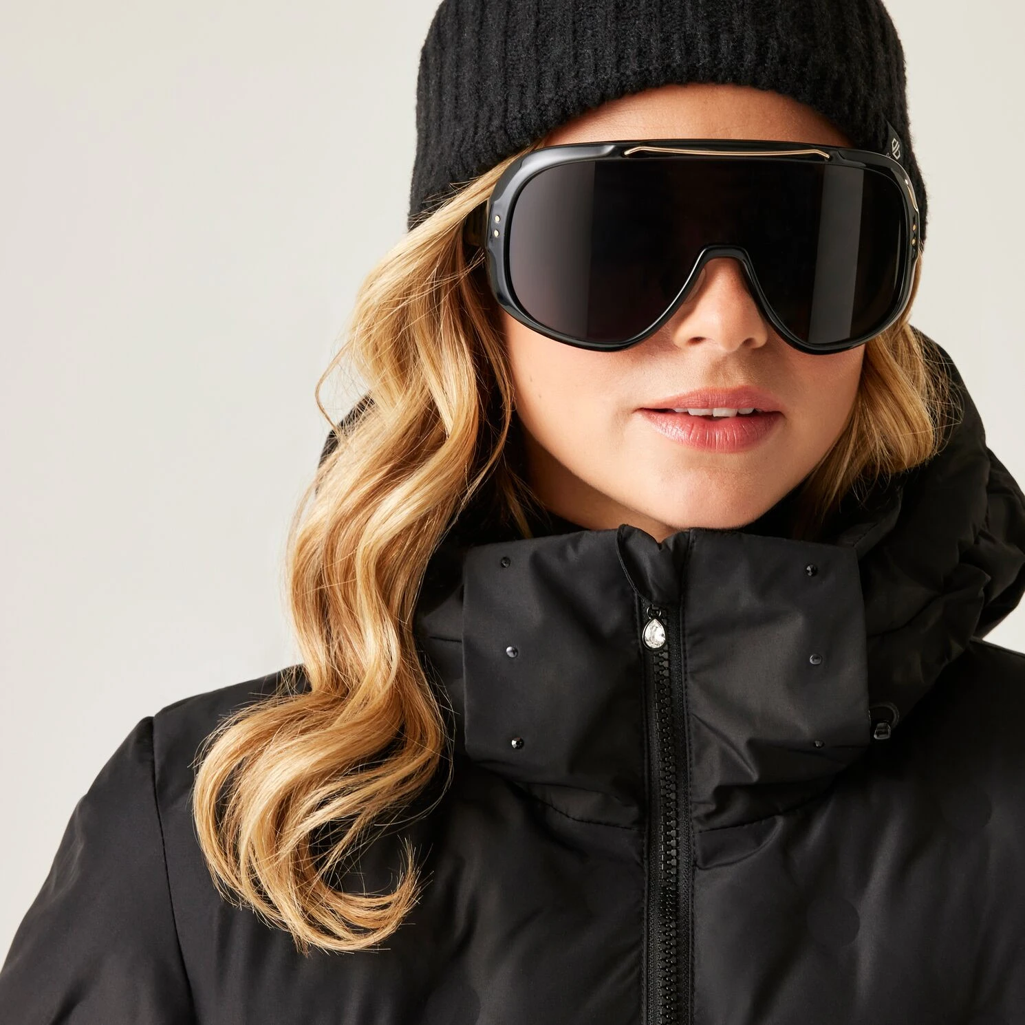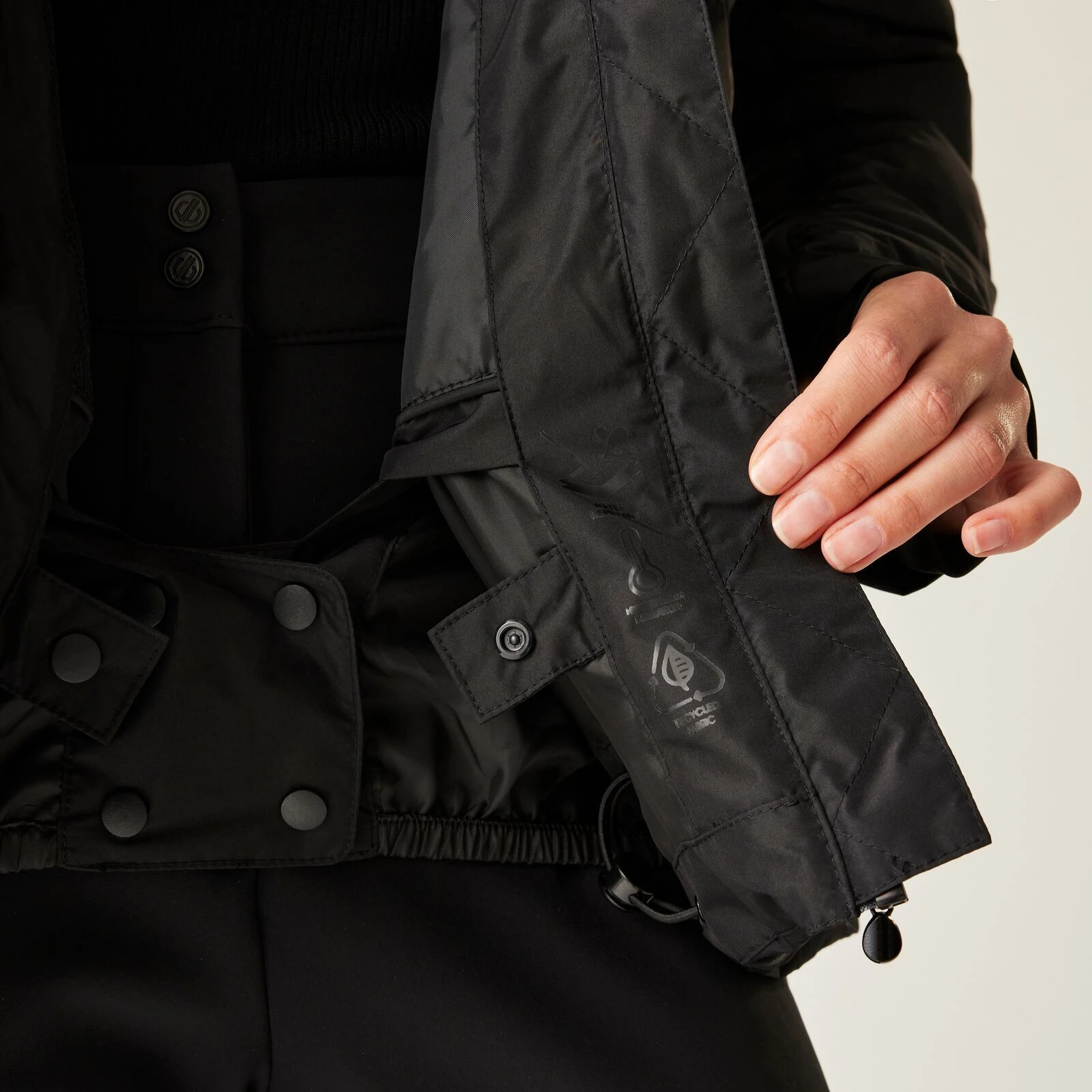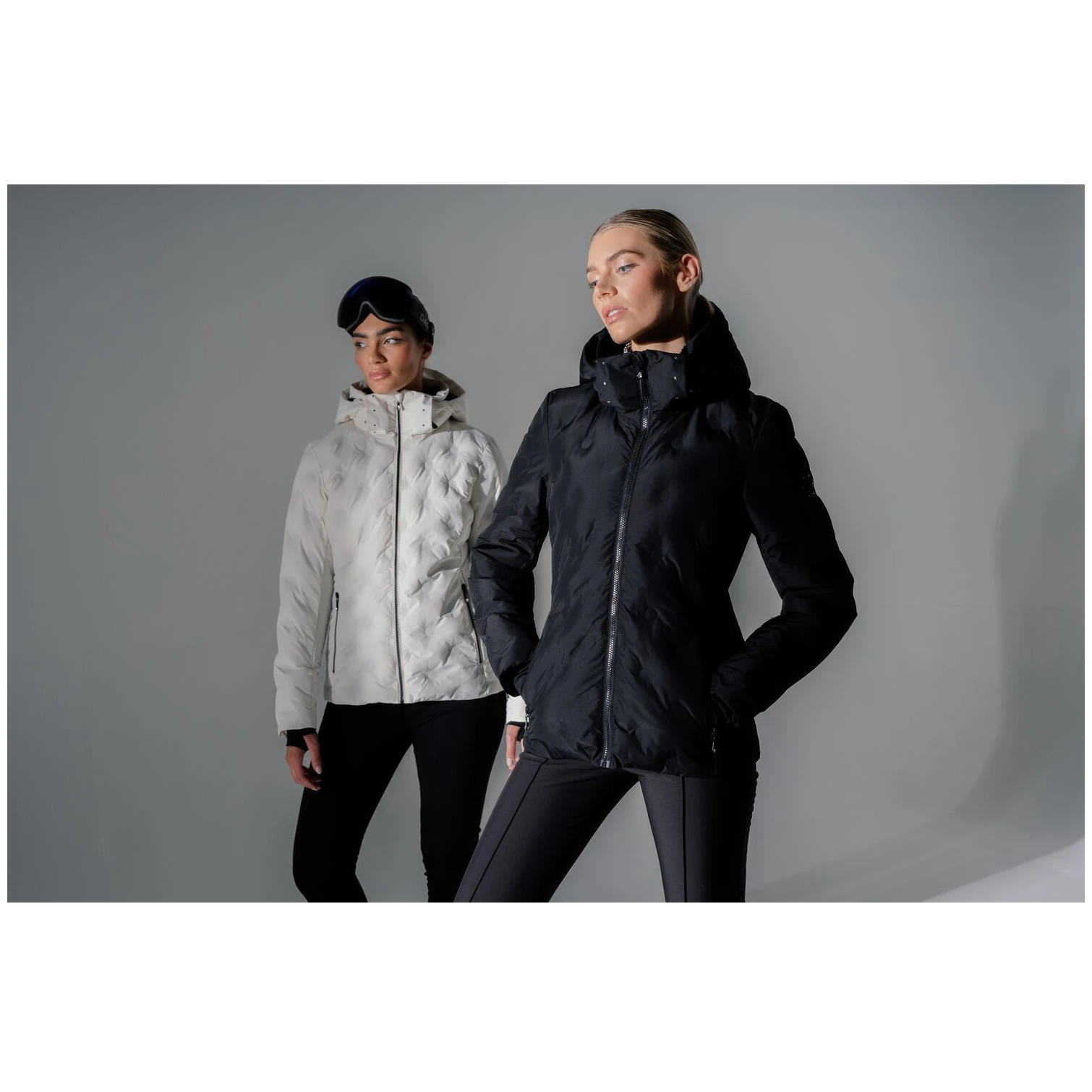 Enfold Jacket combina un diseño moderno con detalles sofisticados. Los tiradores de cremallera y distintivos están adornados con cristales Swarovski, lo que le da a la chaqueta un aspecto único tanto en la pista como en la ciudad.