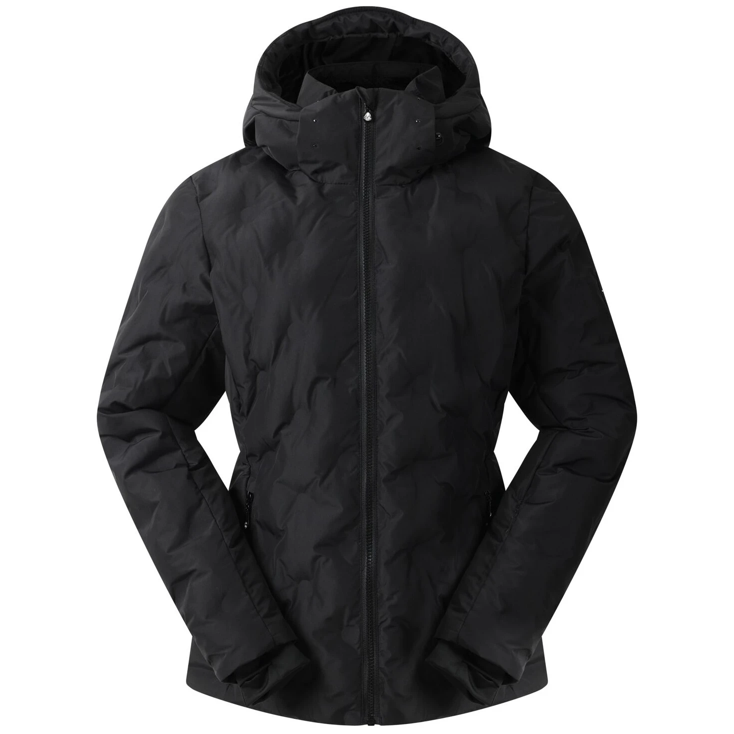 La chaqueta incluye un bolsillo para el forfait, un faldón para la nieve fijo y una capucha desmontable con correas ajustables. El elemento de diseño termosellado proporciona una protección adicional contra el viento y la nieve.