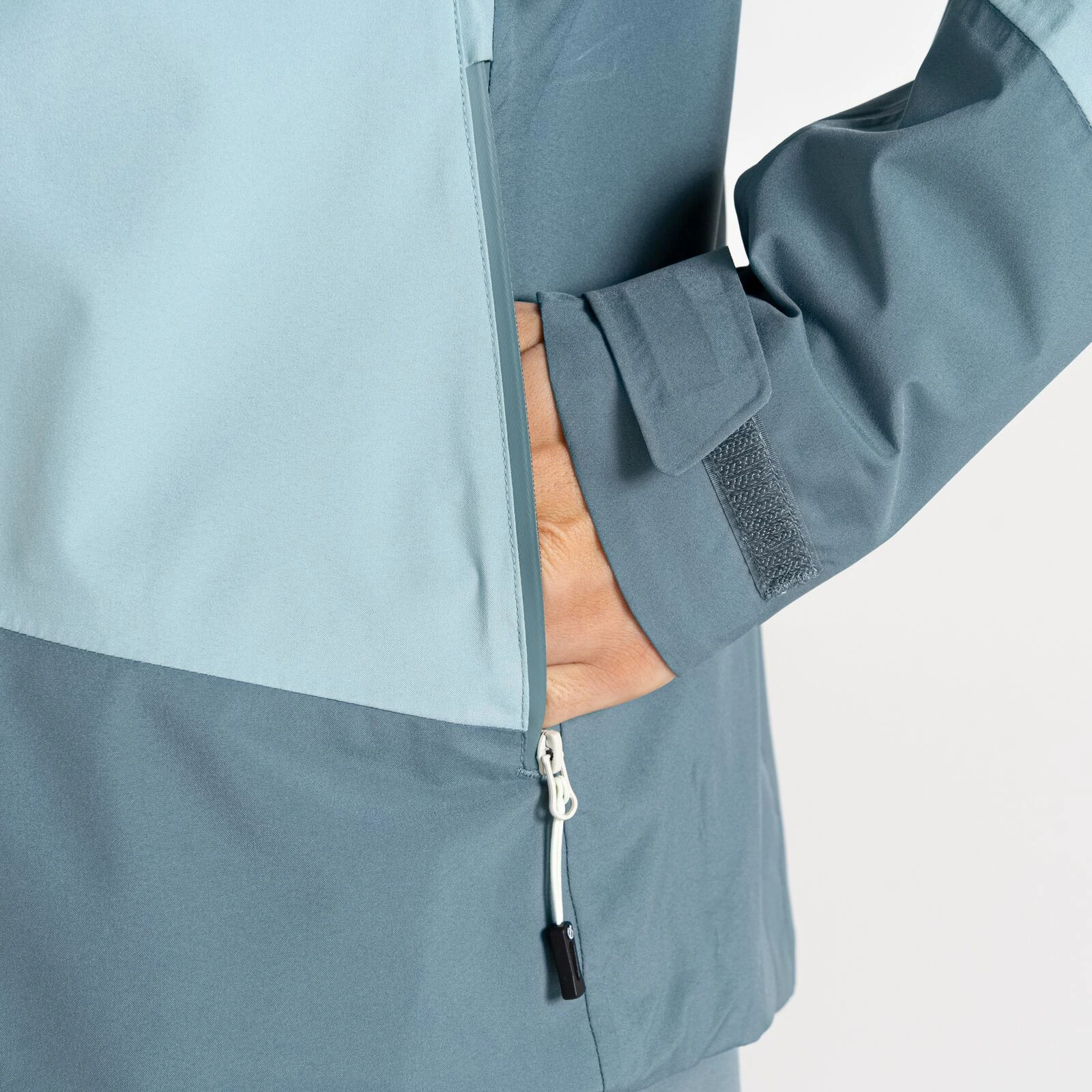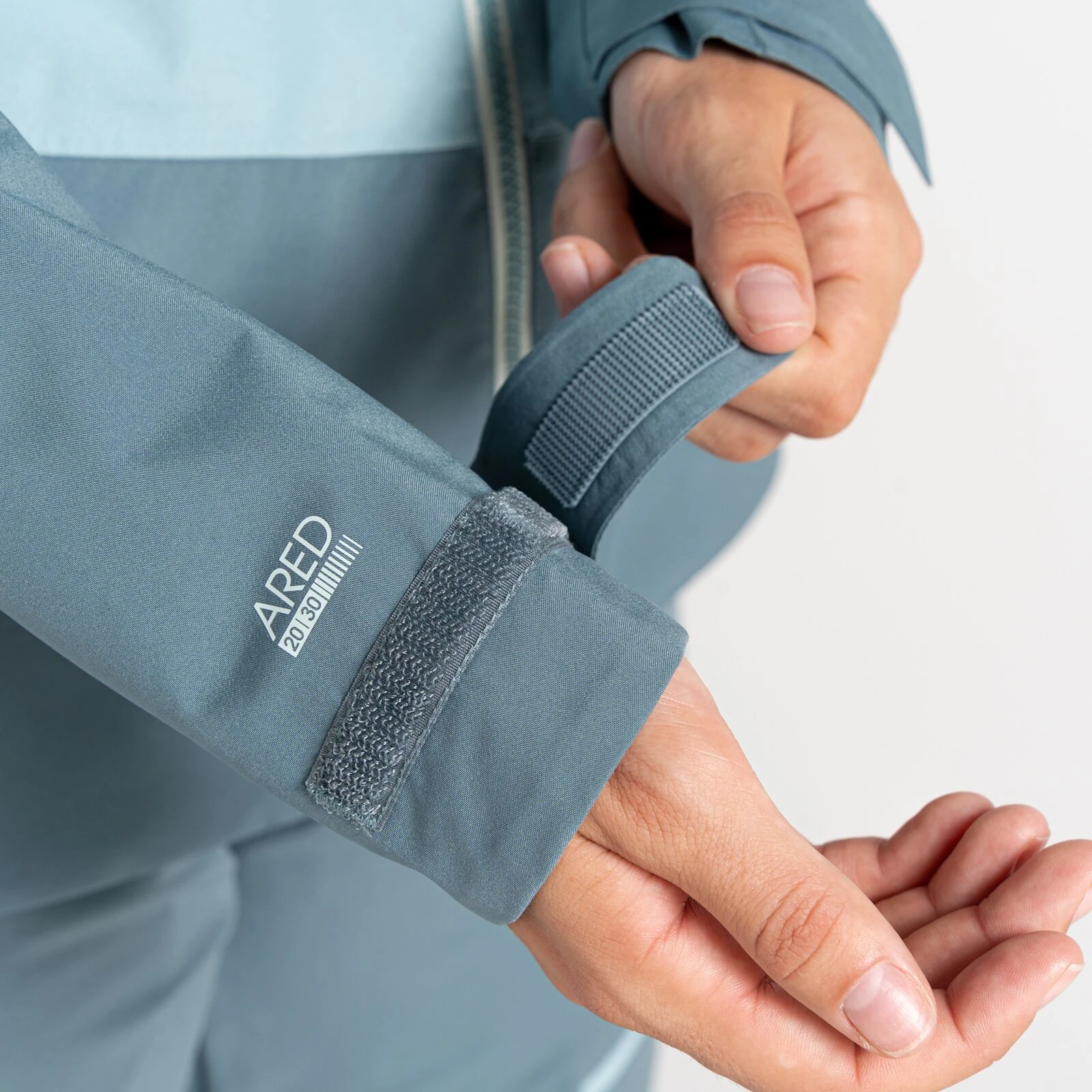 La chaqueta Dare 2b Women’s Nomadic II es una chaqueta impermeable para mujer diseñada para el movimiento rápido y el clima cambiante. El ligero poliéster reciclado de 2,5 capas con membrana ARED 20/30 resiste la lluvia y respira eficazmente.