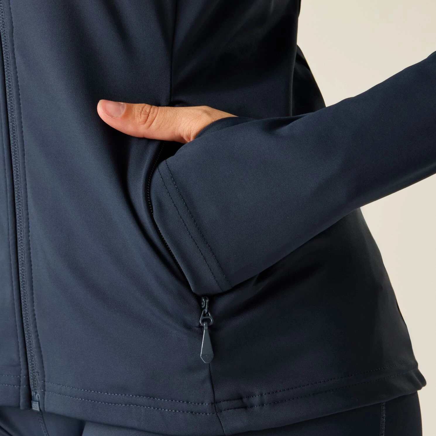 Los detalles prácticos, como la cremallera completa, los orificios para los pulgares y dos bolsillos con cremallera, aumentan la funcionalidad y la comodidad. Las costuras con forma vertical realzan la figura y contribuyen a un corte favorecedor y que sienta bien, para que te sientas segura en cada actividad.
