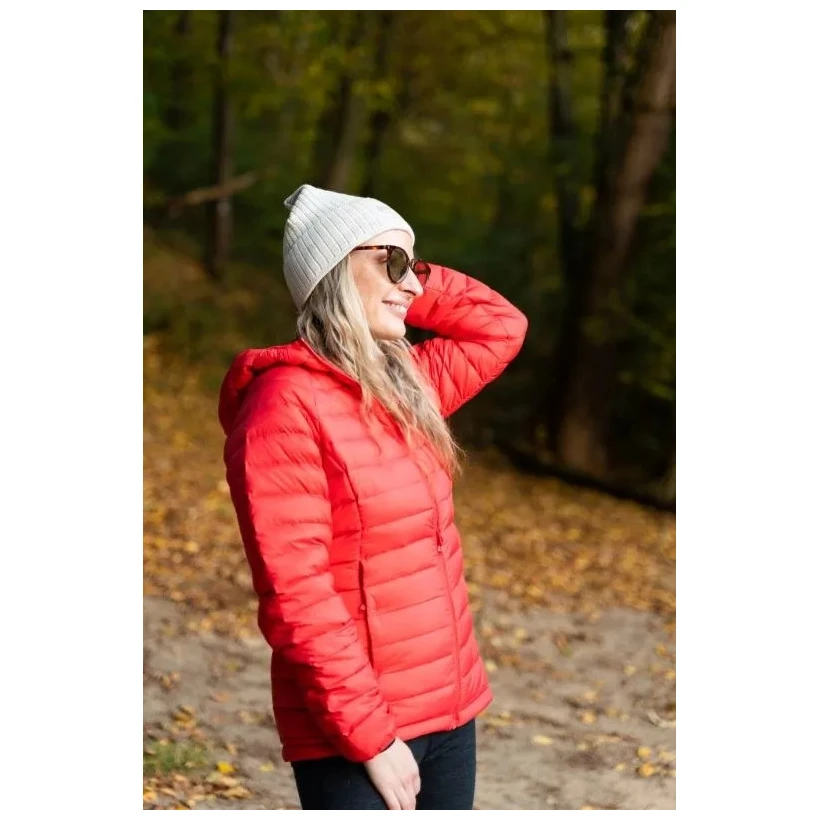 Plumífero ligero de mujer Husky Dreeser L relleno de plumas de pato. La chaqueta no tiene cámaras especialmente acolchadas, por lo que es muy fácil de empaquetar. Ideal para llevar de otoño a primavera.