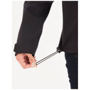 La chaqueta también ofrece una capucha ajustable que se puede enrollar hasta formar un cuello. El extremo superior de la cremallera principal está cubierto con un suave forro DriClime™ que también evacua la humedad para evitar rozaduras en la barbilla y mantenerla seca. Las costuras de la chaqueta están 100% selladas y la ventilación puede regularse con las cremalleras PitZip de las axilas. Las mangas tienen puños ajustables con Velcro®. El dobladillo inferior es elástico y ajustable con un cordón. La última gran característica es la posibilidad de guardar la chaqueta en su propio bolsillo.