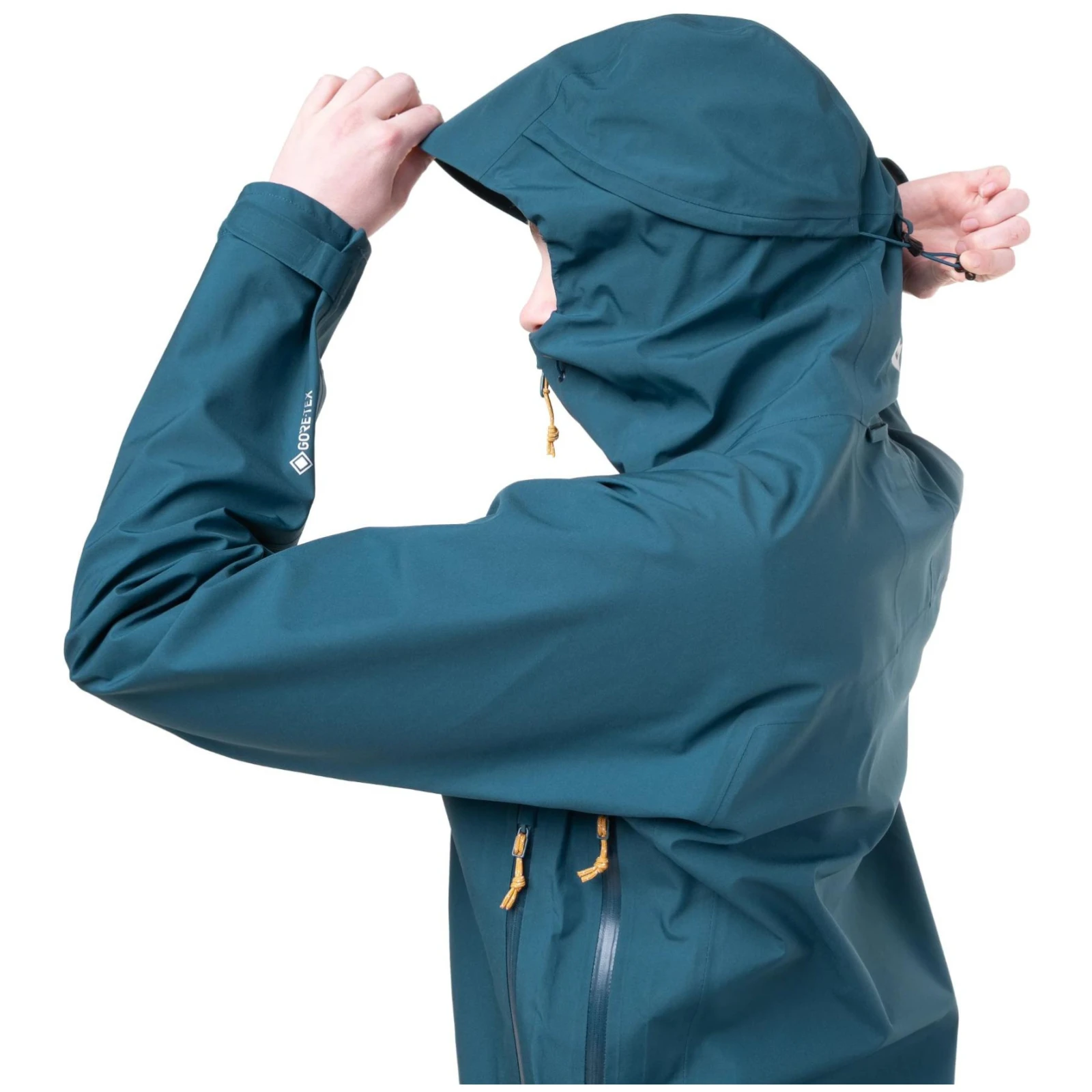 Su alta funcionalidad está garantizada gracias a la capucha Mountain Hood totalmente ajustable y a los detalles meticulosamente elaborados, entre los que se incluyen las mangas moldeadas con puños ajustables con velcro, así como un cordón de ajuste en el dobladillo. El corte alpino permite llevar capas base adicionales sin restringir la libertad de movimientos. Además, la chaqueta está equipada con ventilación con cremallera en la zona de las axilas, dos grandes bolsillos con cremalleras YKK® WR y una cremallera bidireccional, moldeada e impermeable YKK Aquaguard con solapa interior.