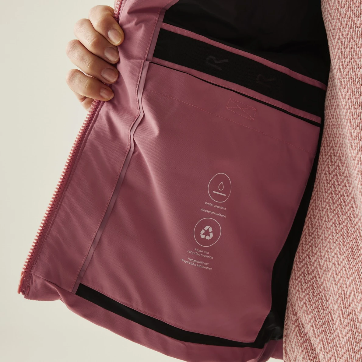 La chaqueta de mujer Regatta Kelane está confeccionada con un ligero material de poliéster con un acabado repelente al agua que protege de la lluvia ligera.