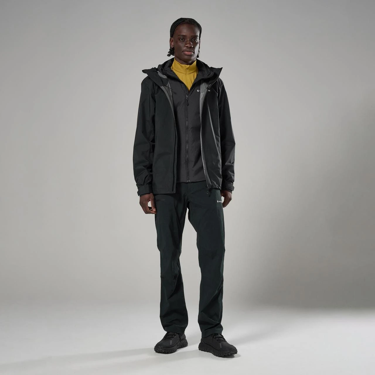 La base está hecha de material Pertex® Shield 2.5 L, que combina tejido ripstop 40D reciclado con una membrana impermeable y cortavientos. El forro interior de tricot 20D es agradable al tacto y aumenta la comodidad al usarlo. La construcción está diseñada con énfasis en peso ligero y funcionalidad, mientras que un número limitado de costuras ayuda a aumentar la durabilidad al tiempo que favorece la transpirabilidad durante el movimiento activo.